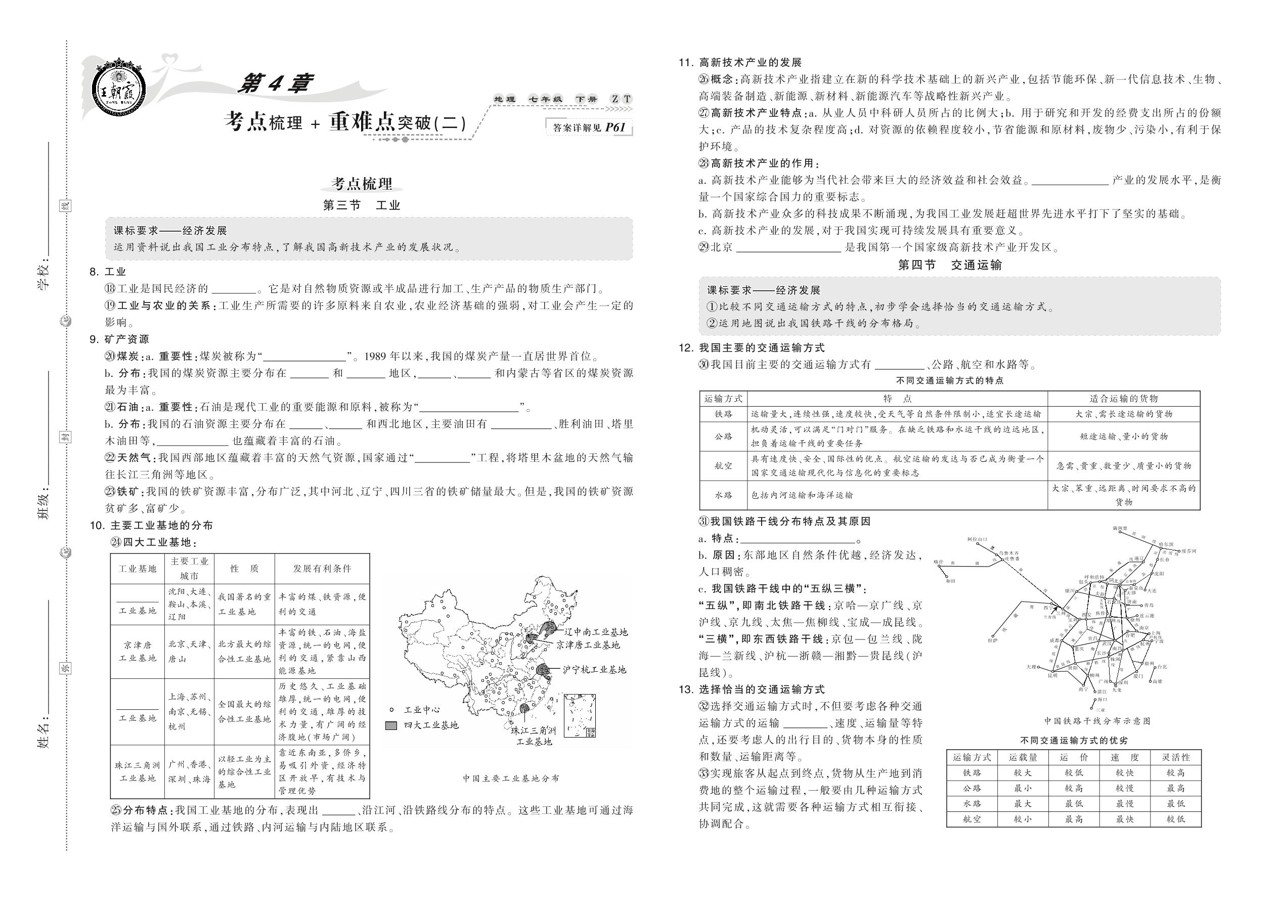 2021下册七年级地理中图版 第4章 考点梳理+重难点突破(二)