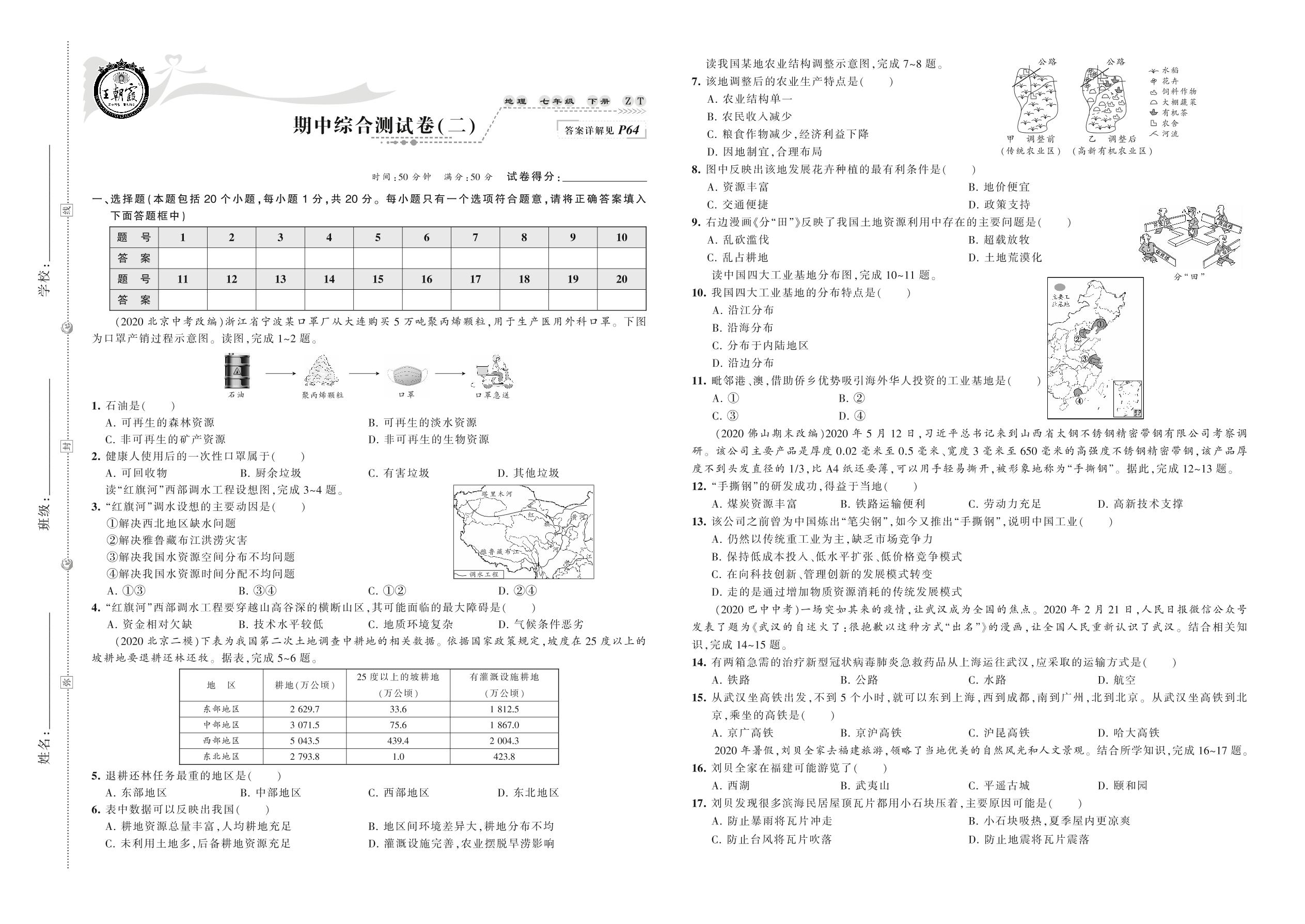 2021下册七年级地理中图版 期中综合测试卷(二)_R210918164349610