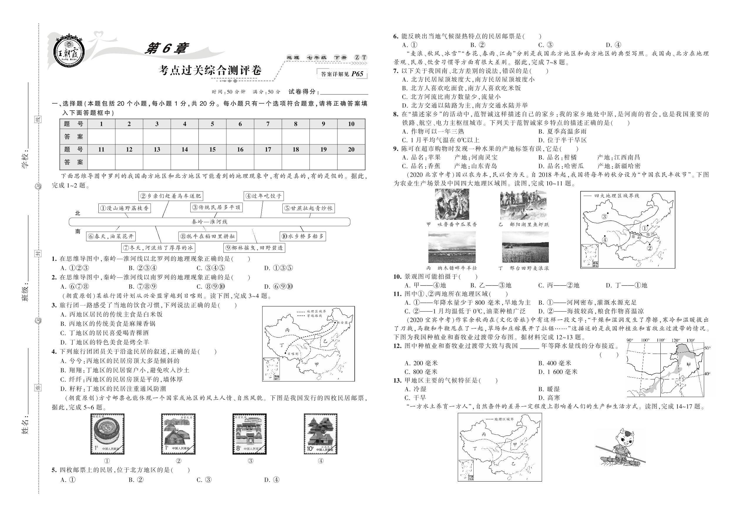 2021下册七年级地理中图版 第6章 考点过关综合测评卷
