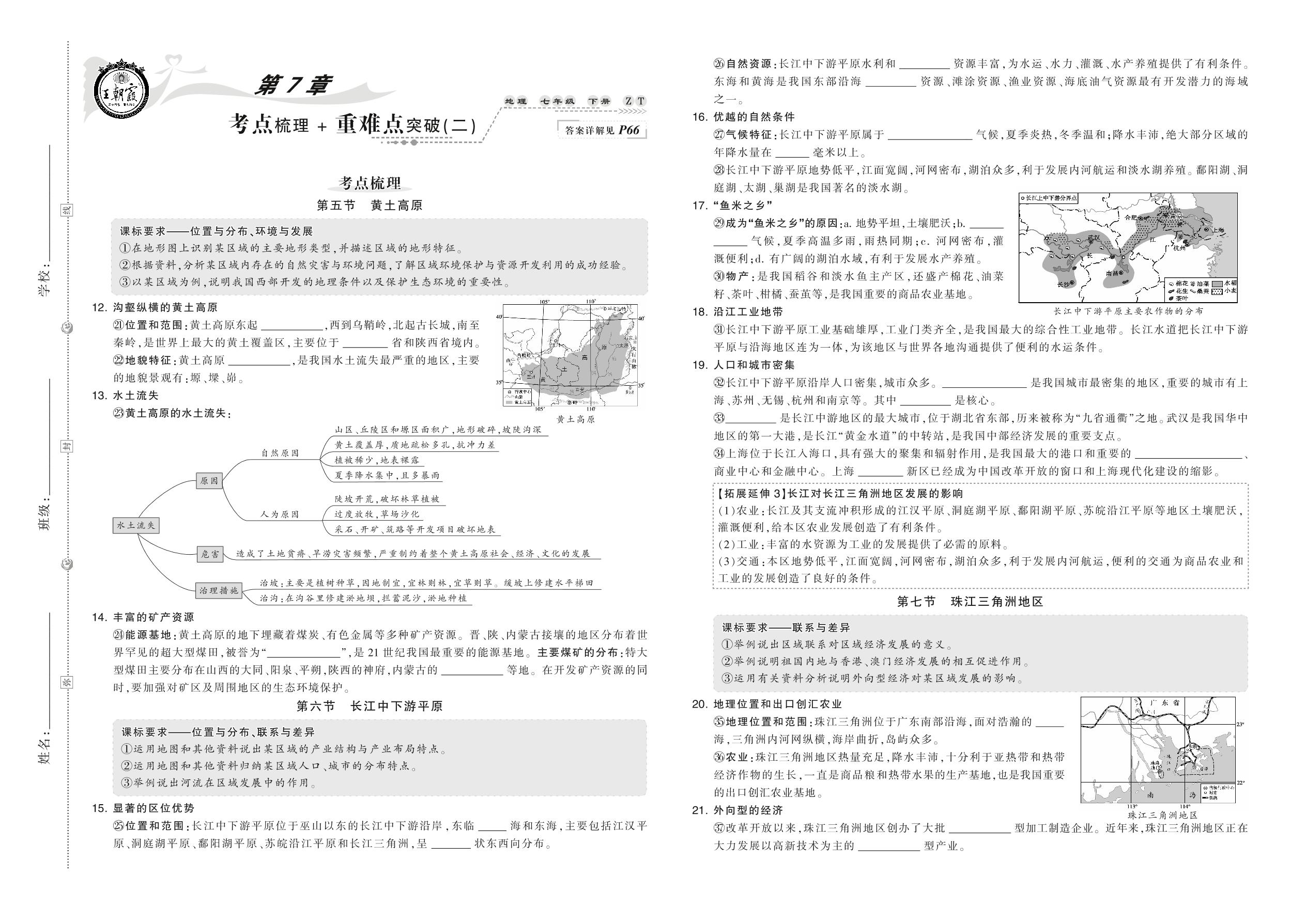 2021下册七年级地理中图版 第7章 考点梳理+重难点突破(二)