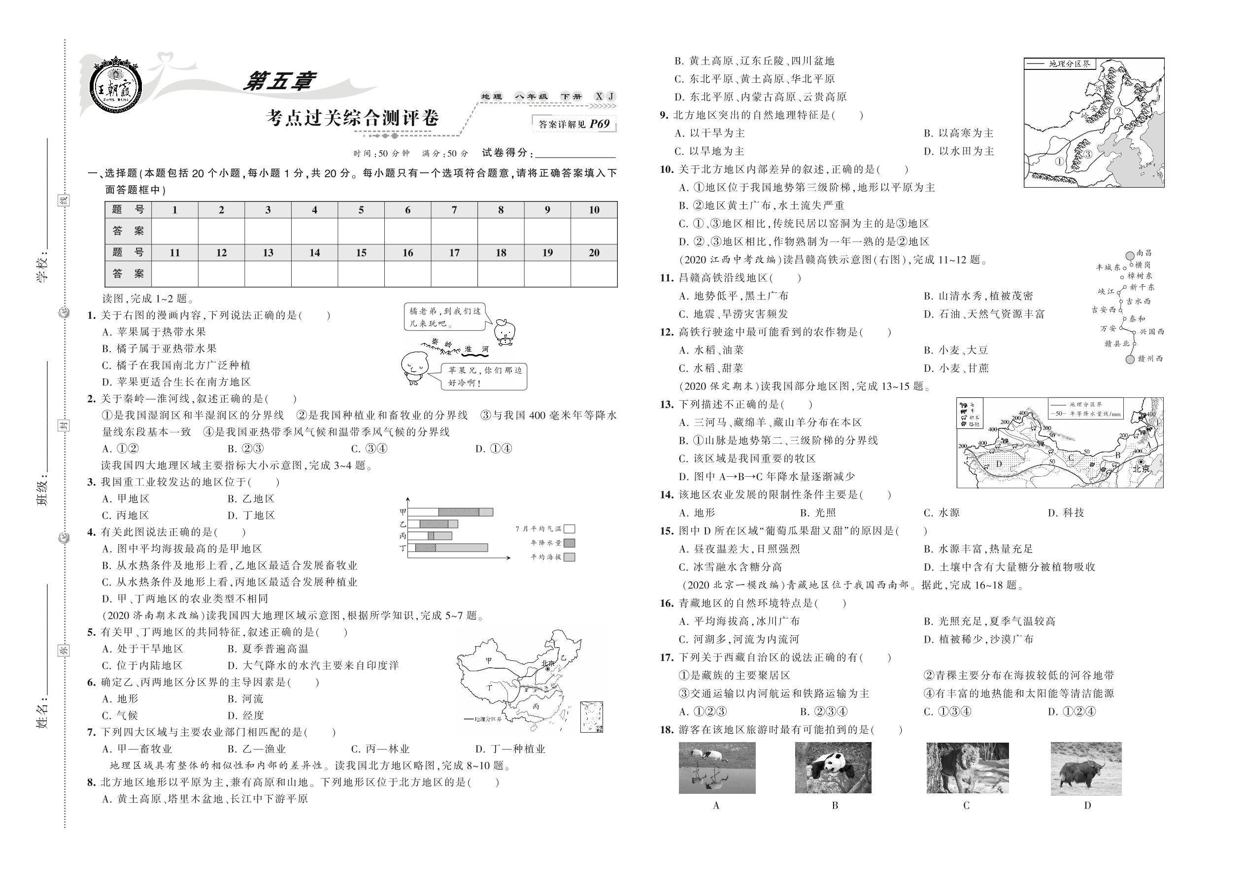 2021下册八年级地理湘教版 第五章 考点过关综合测评卷