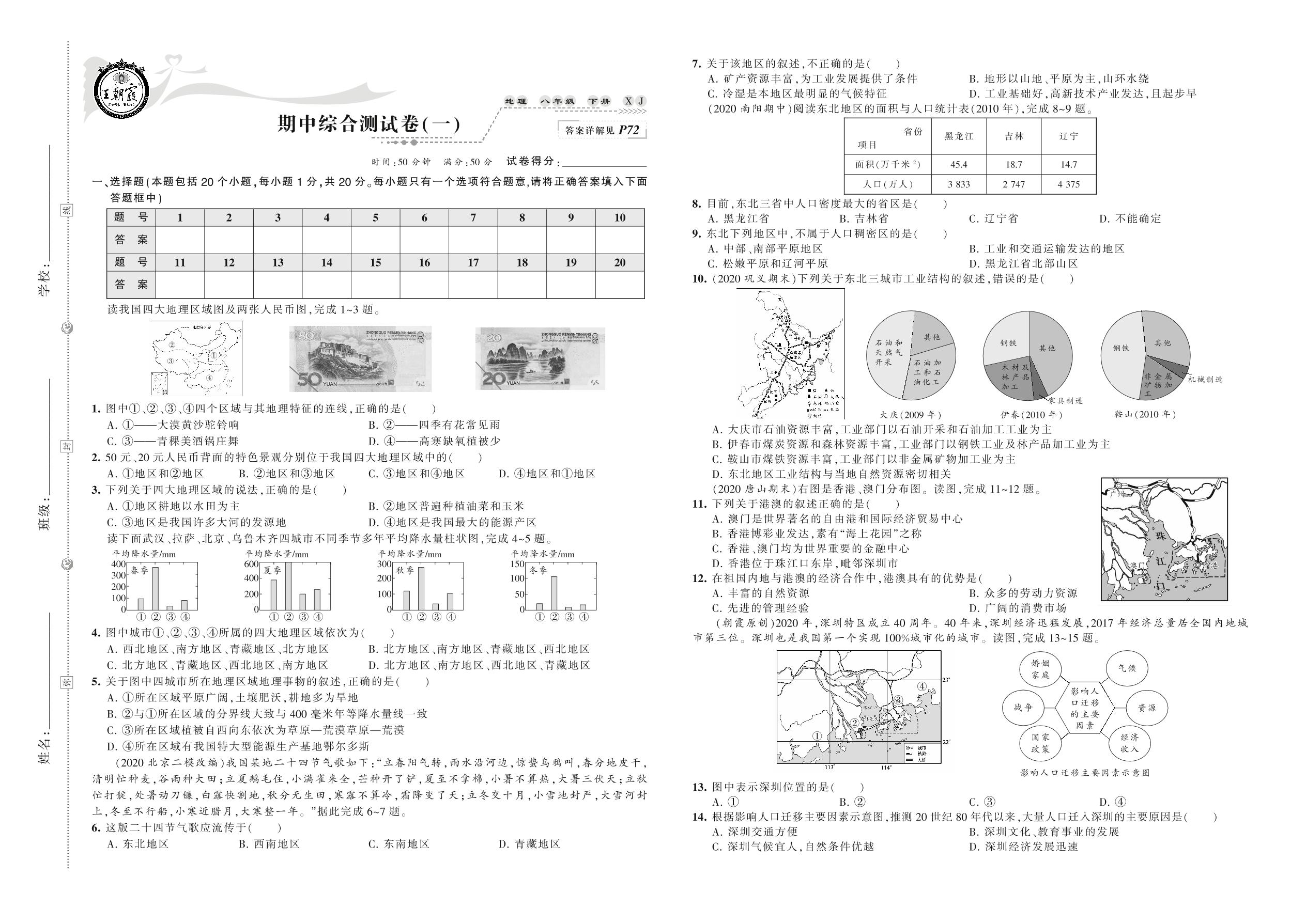2021下册八年级地理湘教版 期中综合测试卷(一)