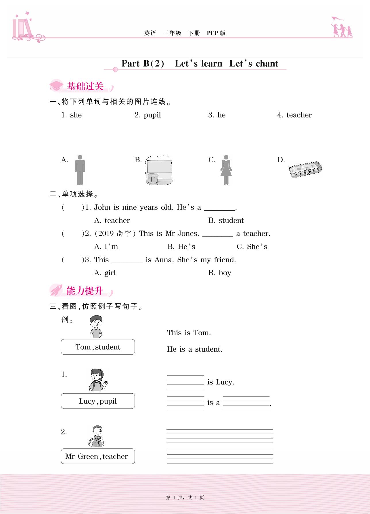 2021下册三年级英语PEP版 Unit 1—Part B(2) Let’s learn Let’s chant