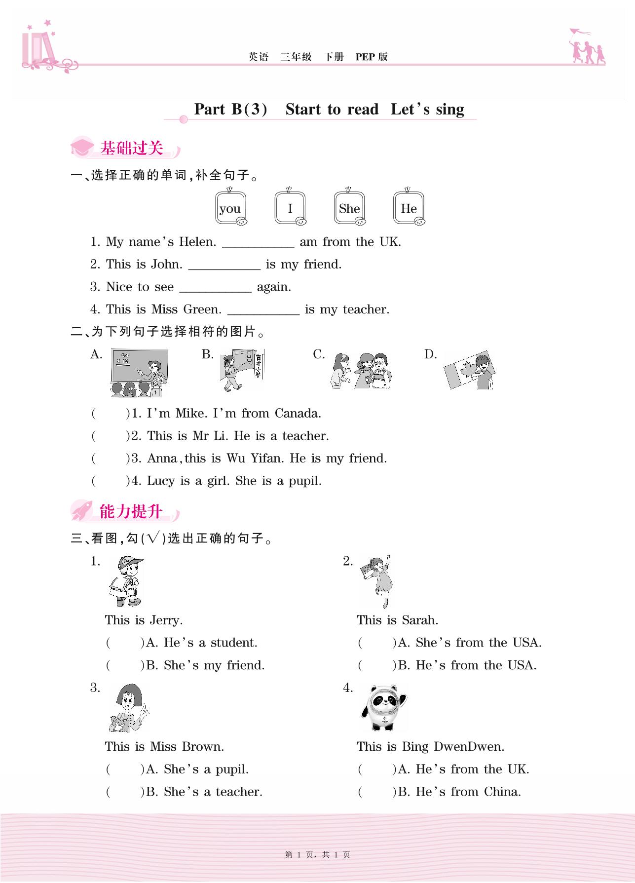2021下册三年级英语PEP版 Unit 1—Part B(3) Start to read Let’s sing