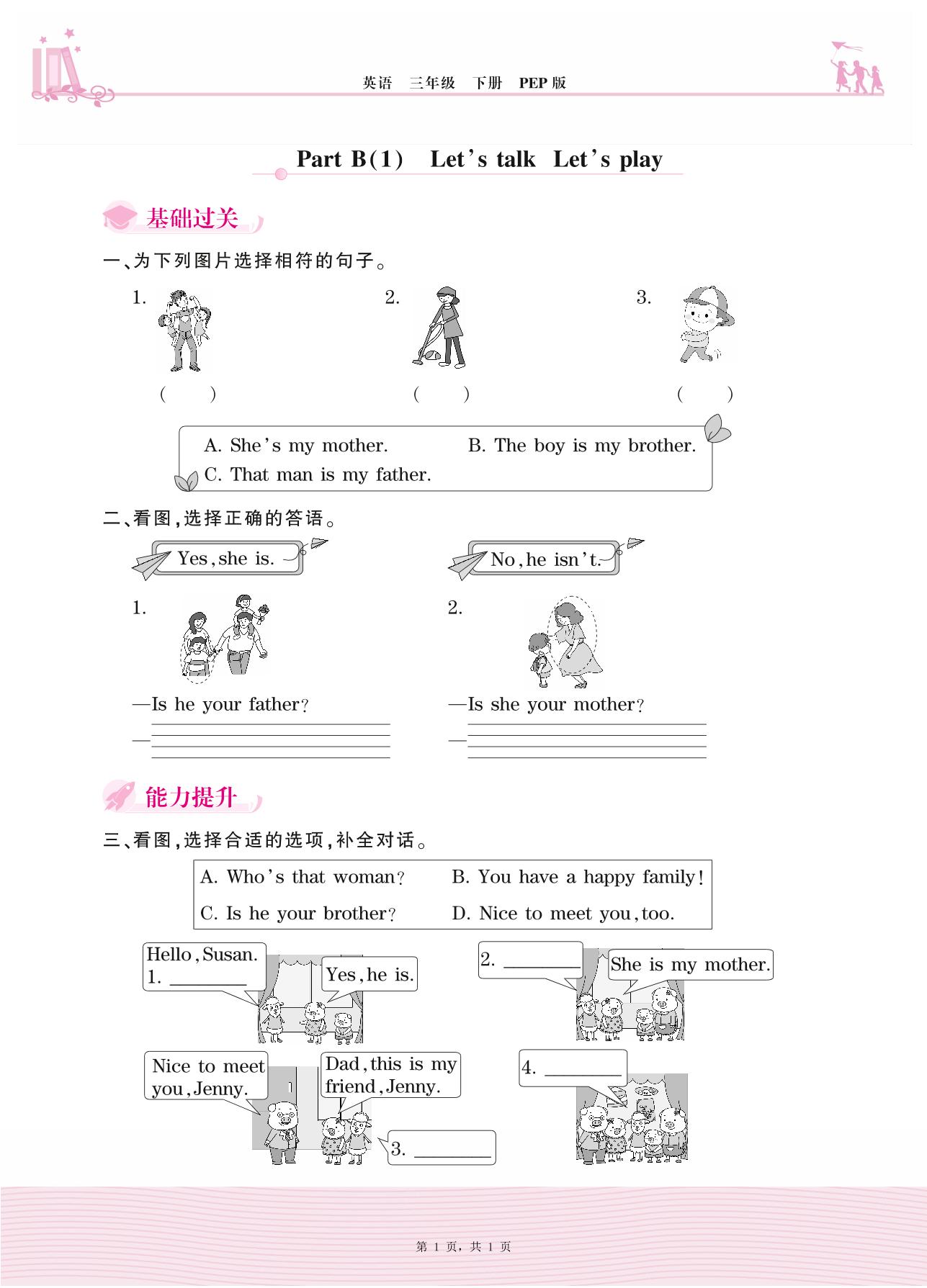 2021下册三年级英语PEP版 Unit 2—Part B(1) Let’s talk Let’s play