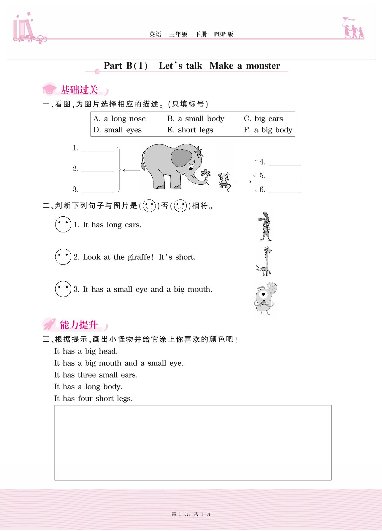2021下册三年级英语PEP版 Unit 3—Part B(1) Let’s talk Make a monster