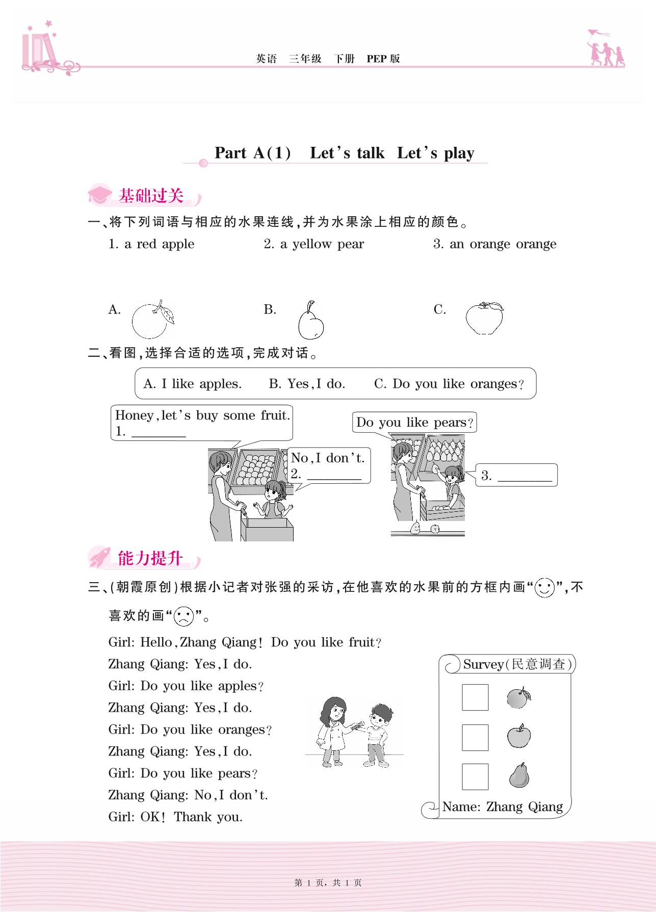 2021下册三年级英语PEP版 Unit 5—Part A(1) Let’s talk Let’s play