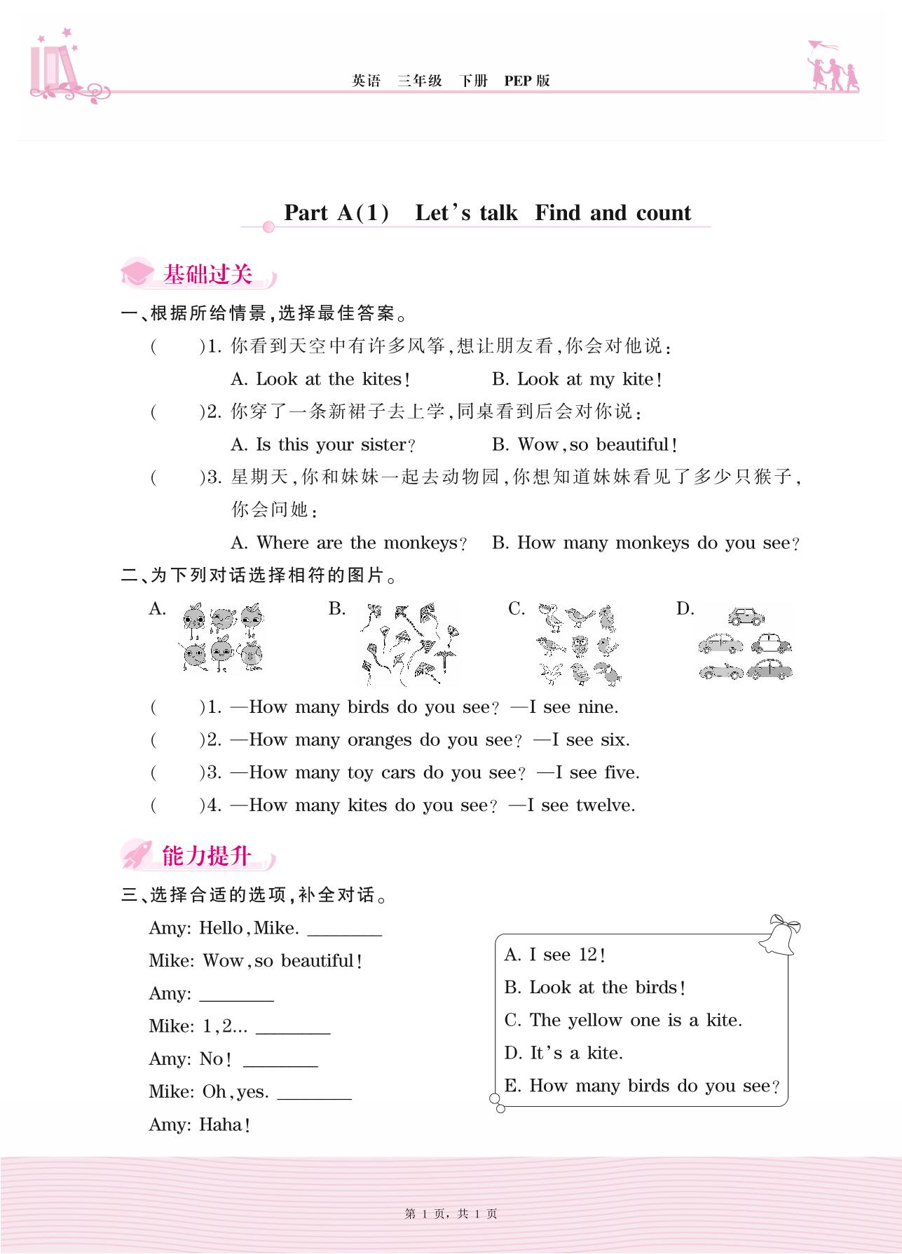 2021下册三年级英语PEP版 Unit 6—Part A(1) Let’s talk Find and count
