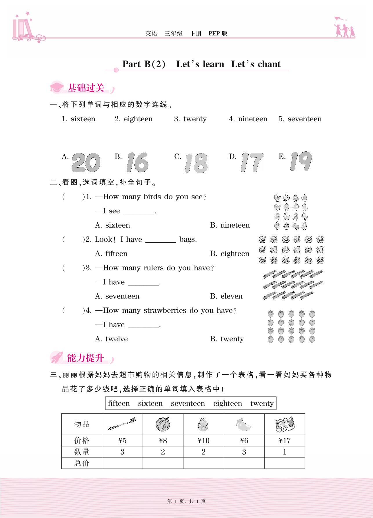 2021下册三年级英语PEP版 Unit 6—Part B(2) Let’s learn Let’s chant