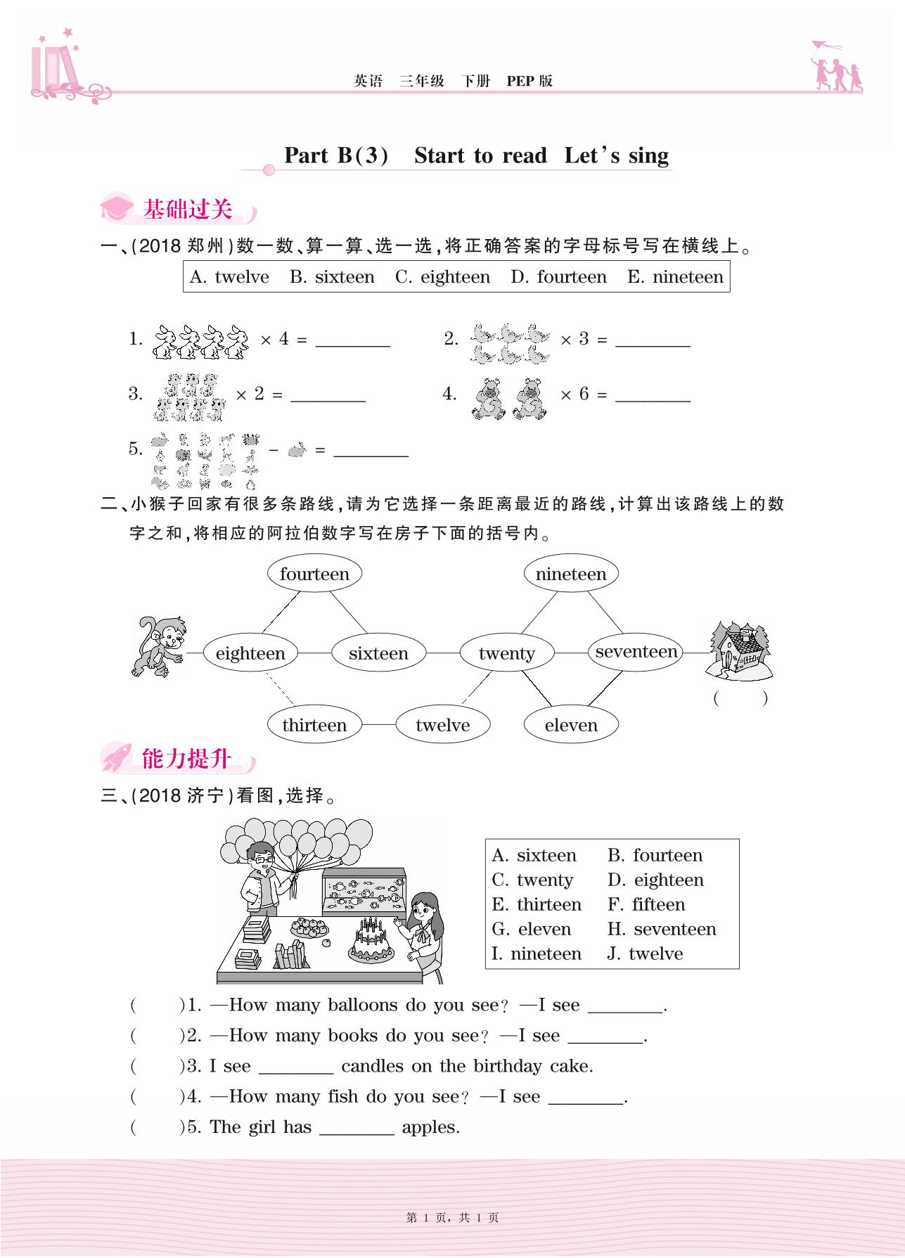2021下册三年级英语PEP版 Unit 6—Part B(3) Start to read Let’s sing