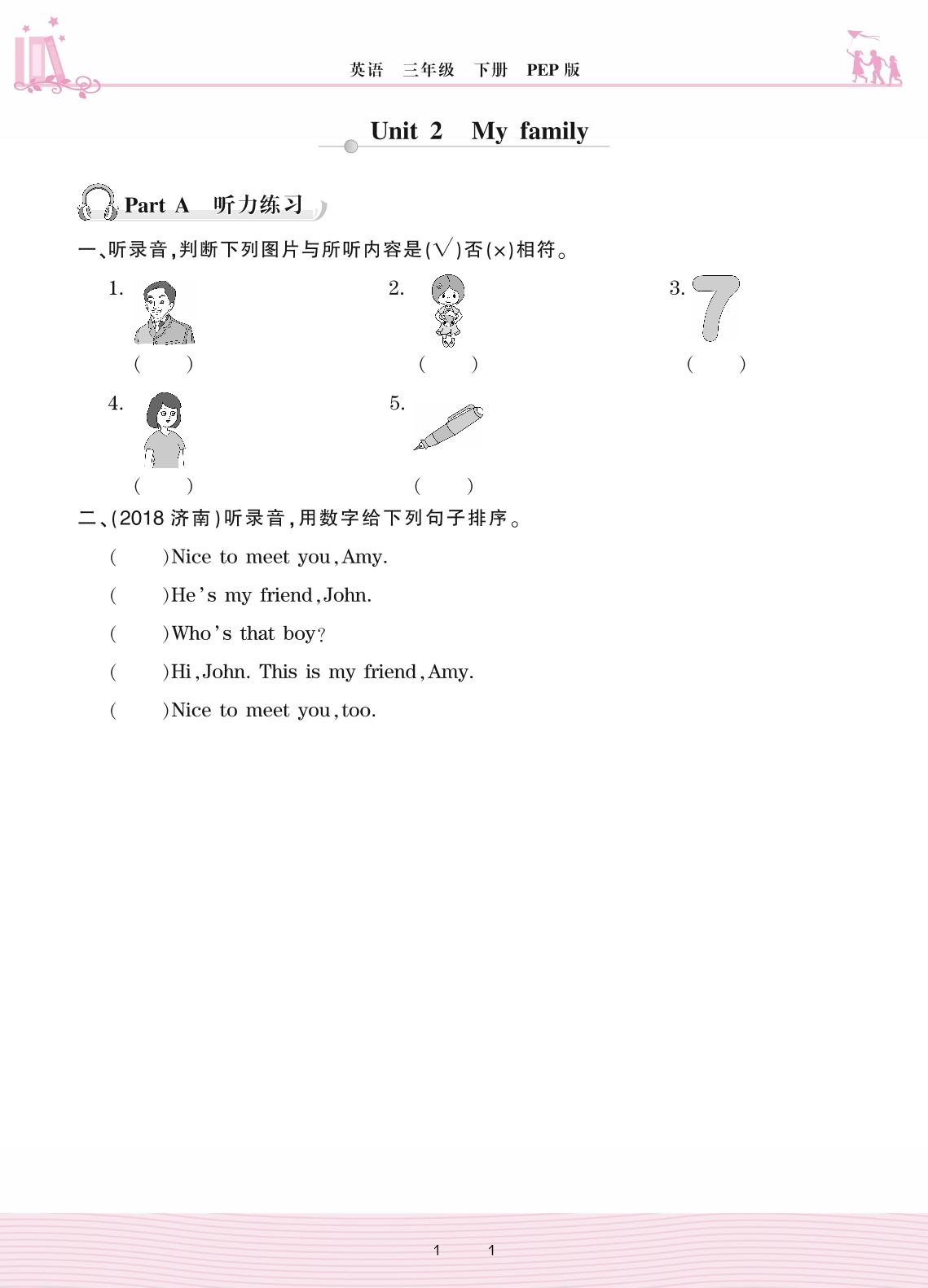 2021下册三年级英语PEP版 Unit 2 My family —Part A