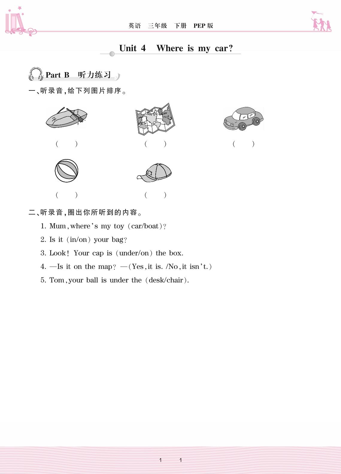 2021下册三年级英语PEP版 Unit 4 Where is my car? —Part B