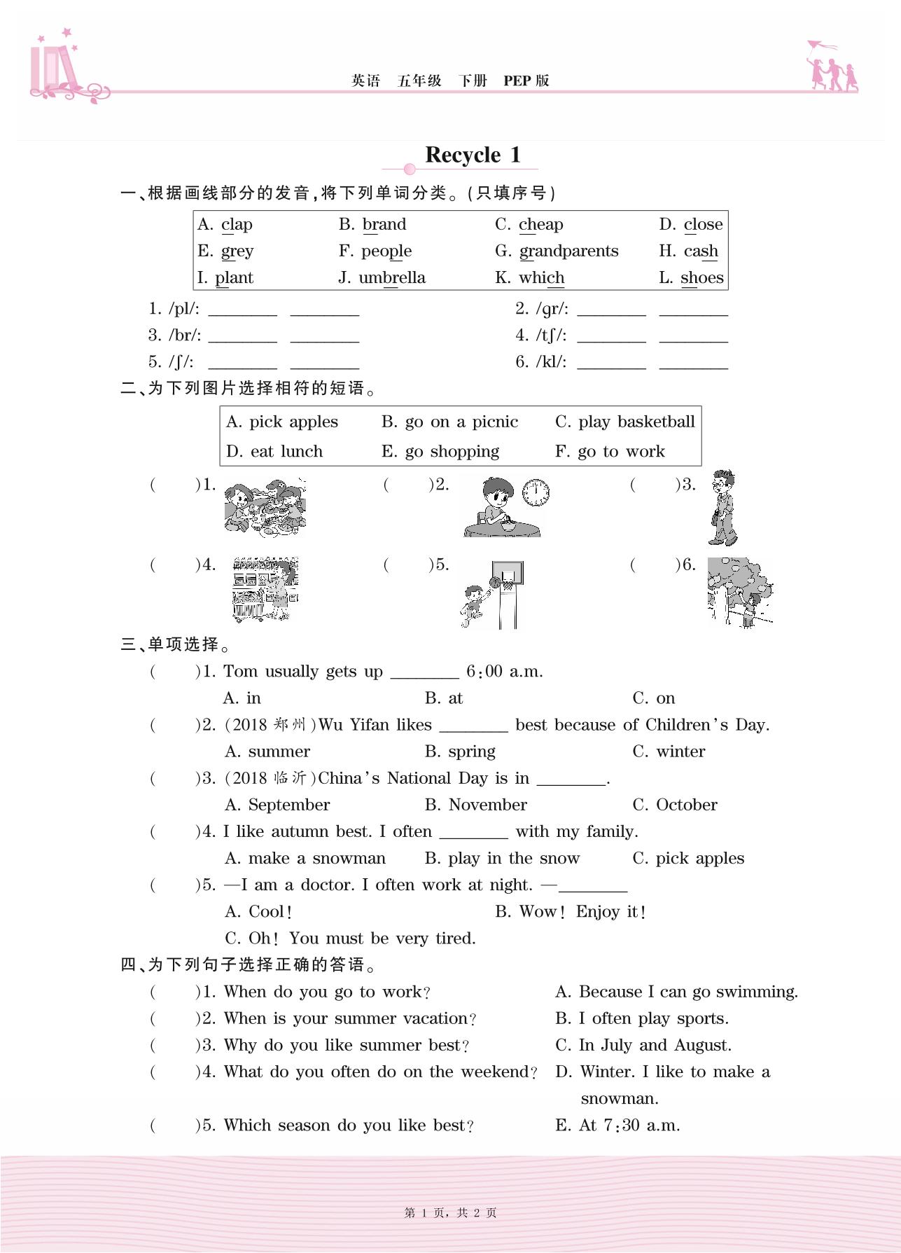 2021下册五年级英语PEP版 Recycle 1_R210922094030094