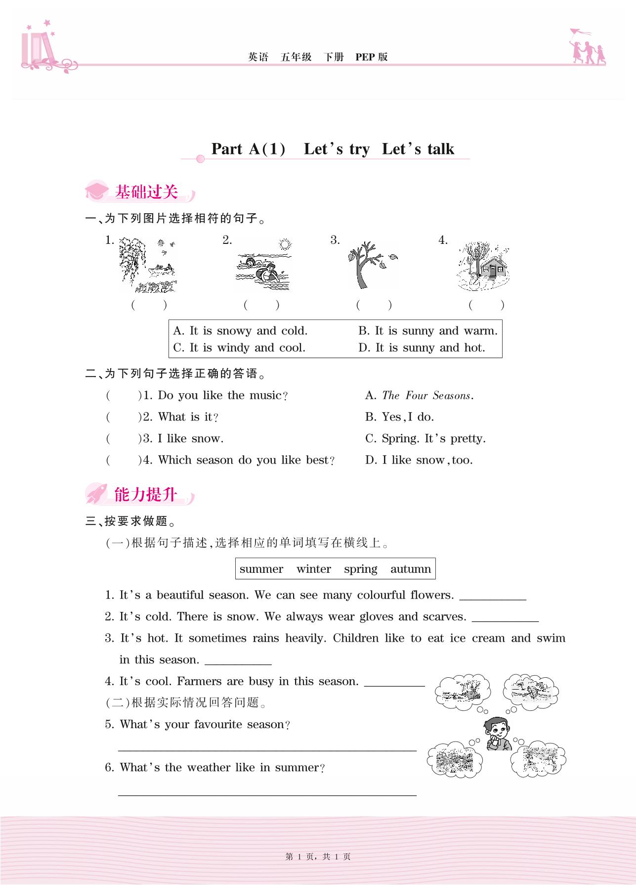 2021下册五年级英语PEP版 Unit 2—Part A(1) Let’s try Let’s talk