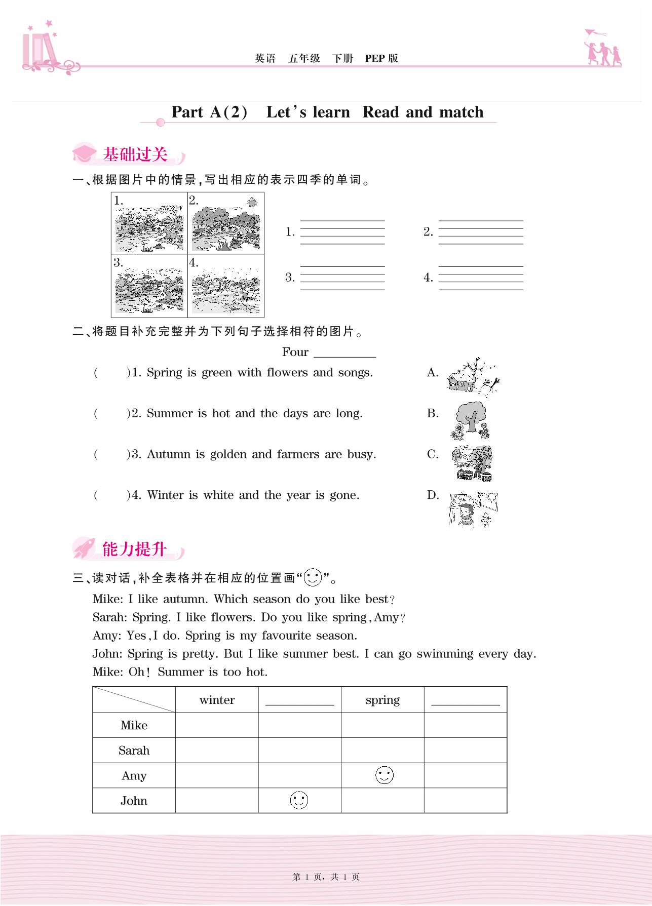 2021下册五年级英语PEP版 Unit 2—Part A(2) Let’s learn Read and match