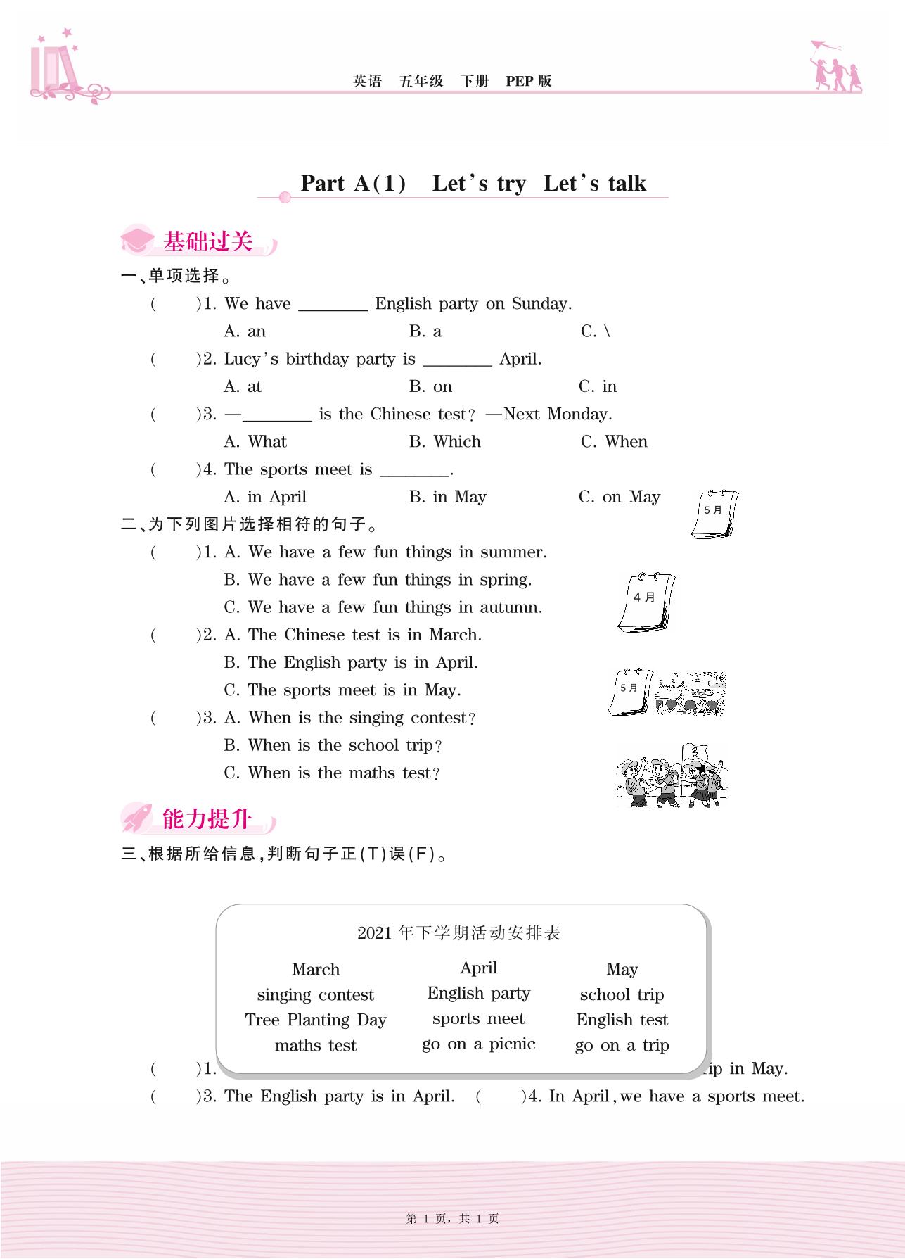 2021下册五年级英语PEP版 Unit 3—Part A(1) Let’s try Let’s talk