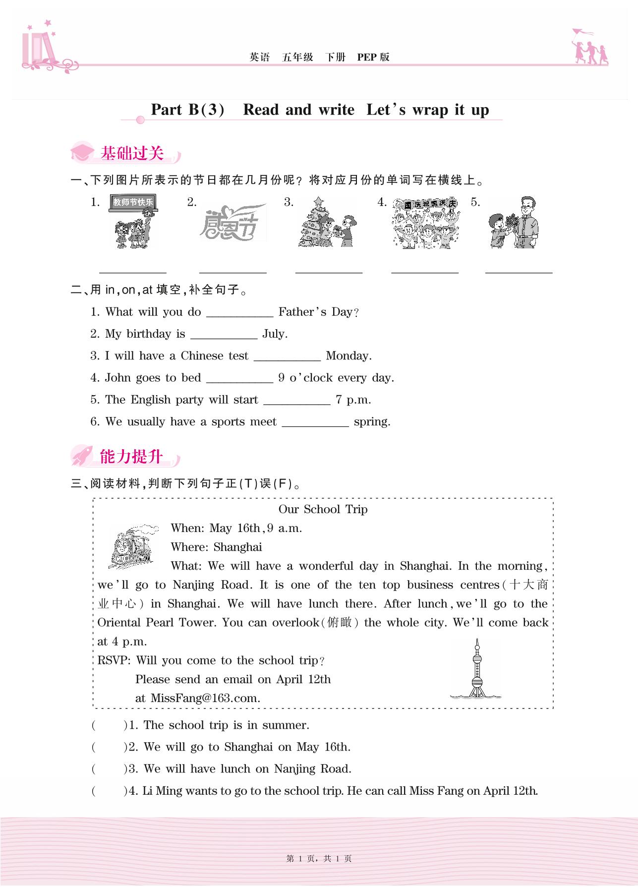 2021下册五年级英语PEP版 Unit 3—Part B(3) Read and write Let’s wrap it up