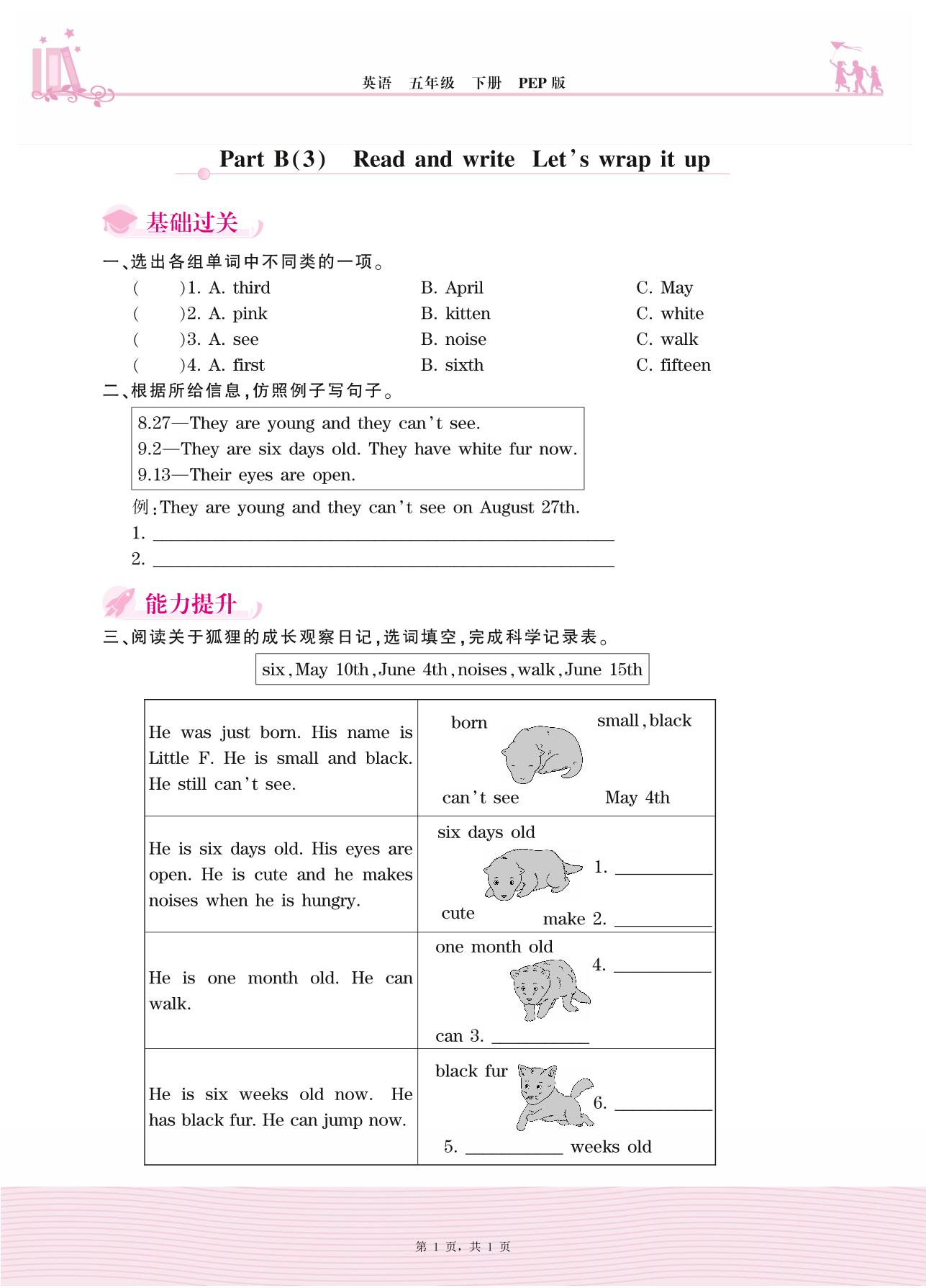 2021下册五年级英语PEP版 Unit 4—Part B(3) Read and write Let’s wrap it up