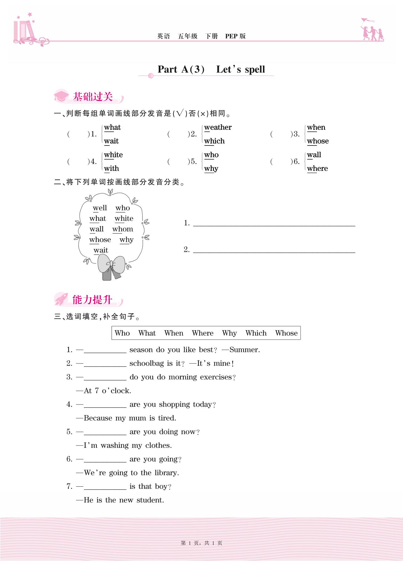 2021下册五年级英语PEP版 Unit 6—Part A(3) Let’s spell