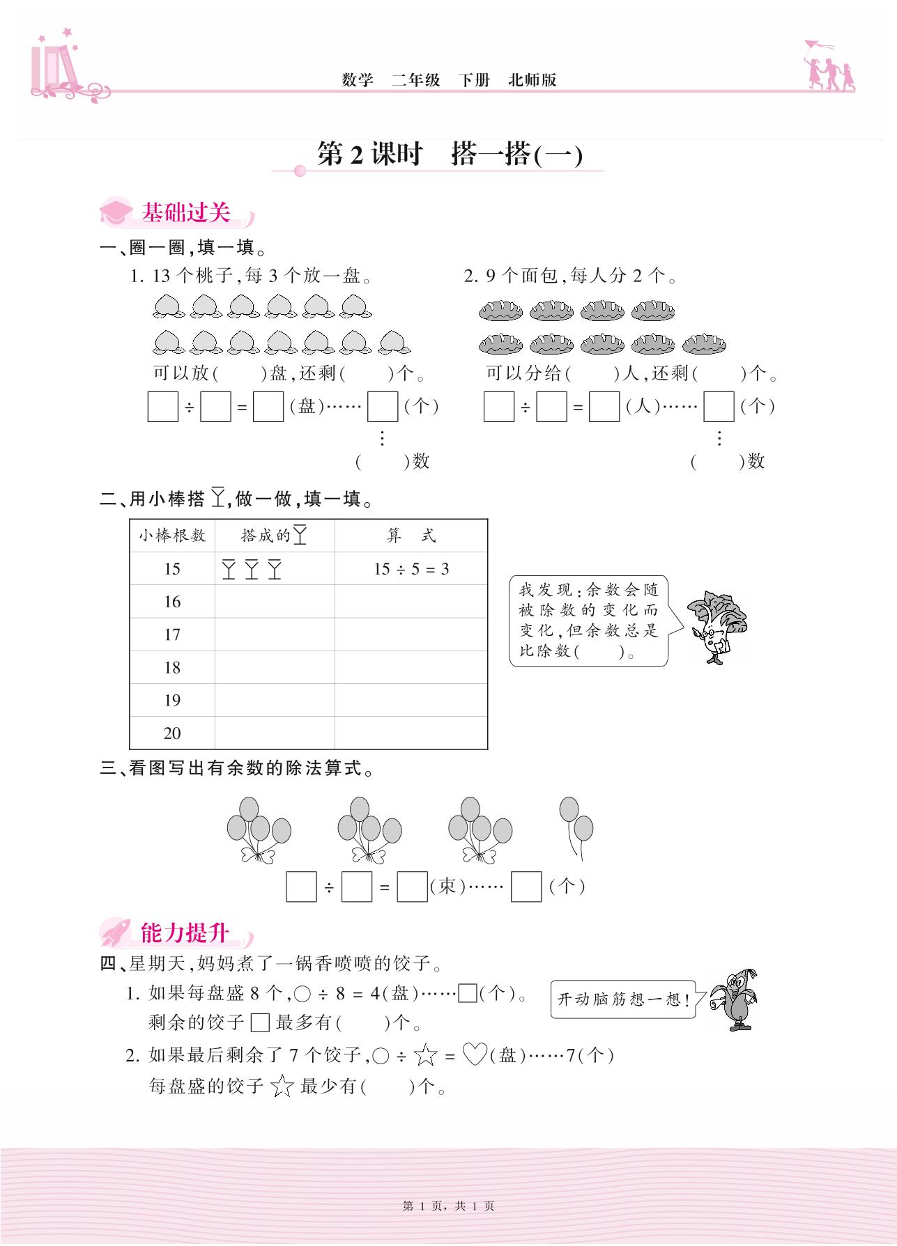 2021下册二年级数学北师版 一 除法——第2课时 搭一搭(一)