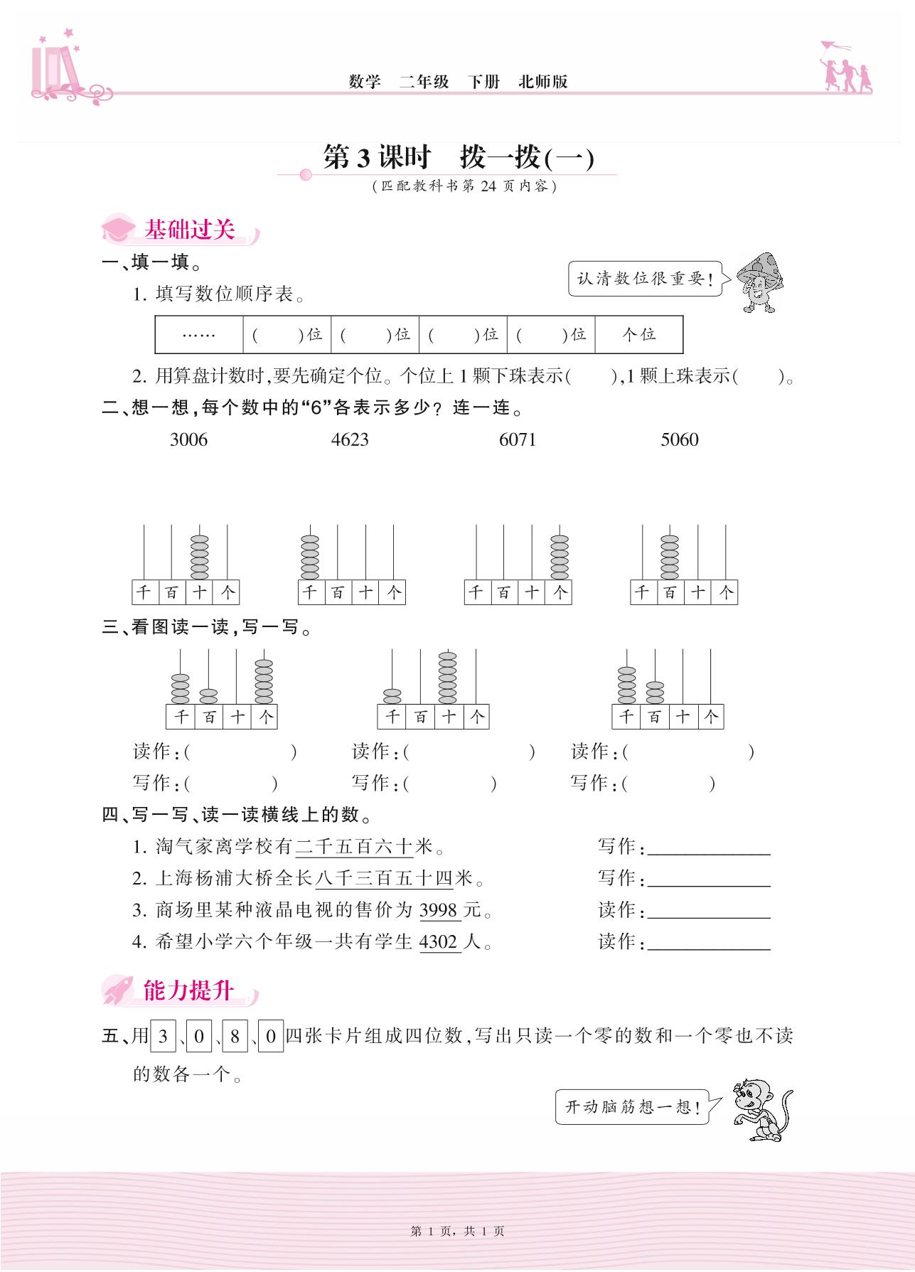 2021下册二年级数学北师版 三 生活中的大数——第3课时 拨一拨(一)