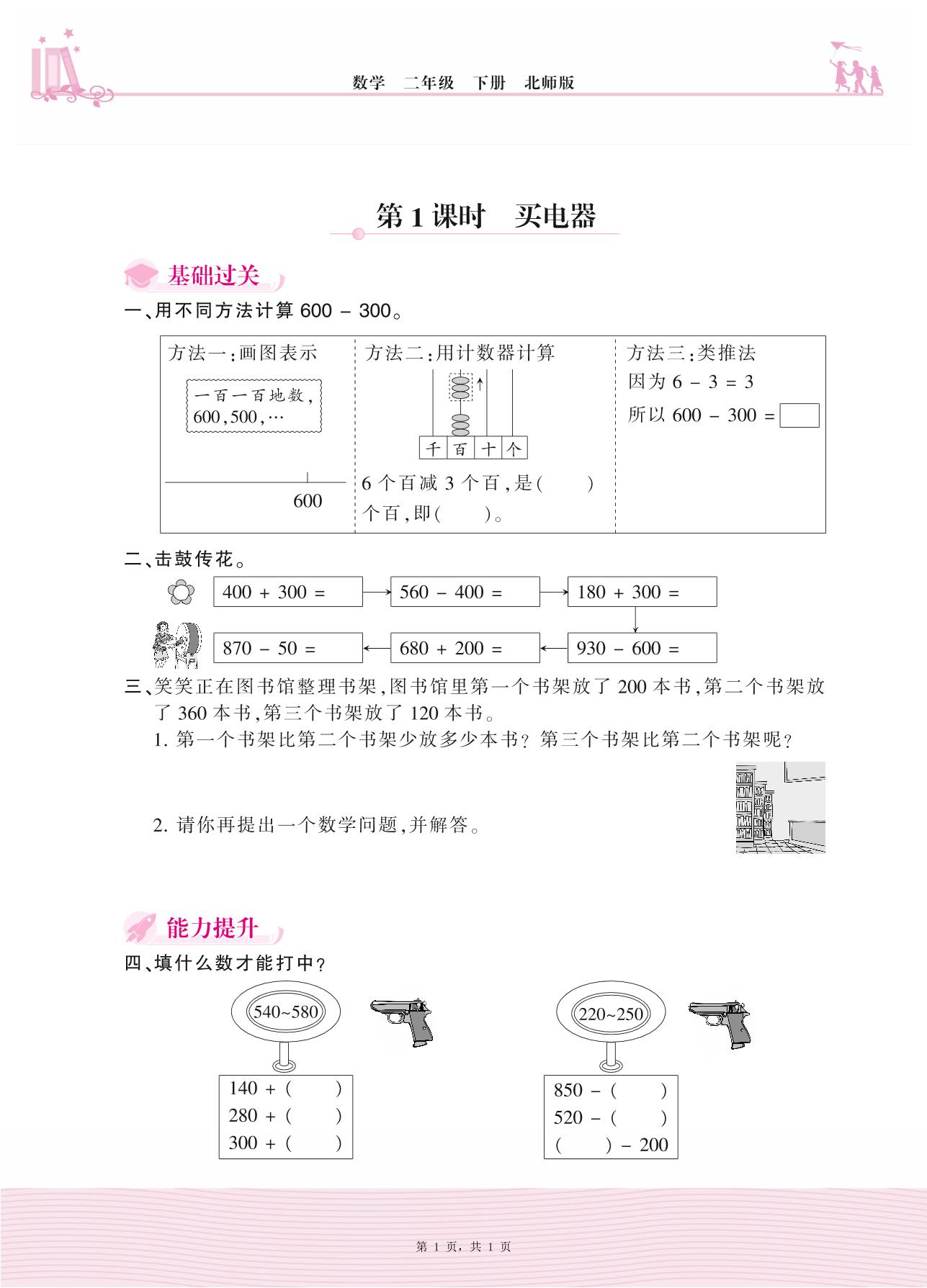 2021下册二年级数学北师版 五 加与减——第1课时 买电器