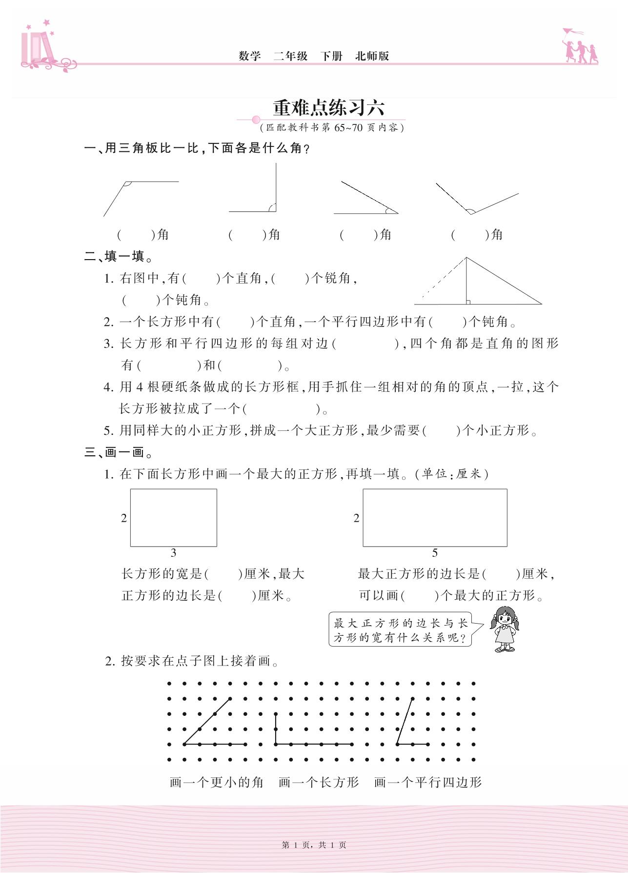 2021下册二年级数学北师版 六 认识图形——重难点练习六