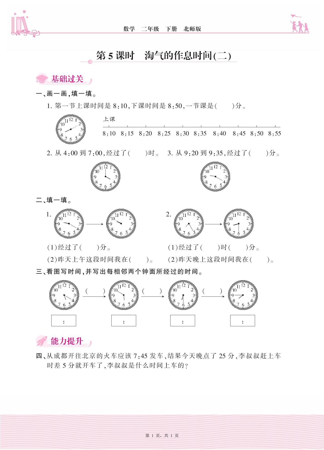 2021下册二年级数学北师版 七 时、分、秒——第5课时 淘气的作息时间(二)