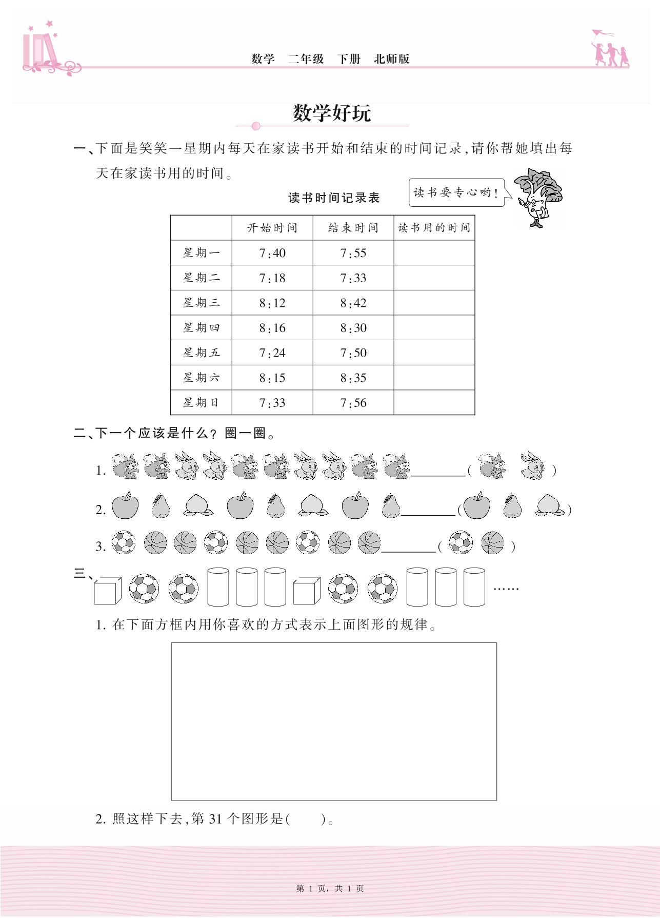 2021下册二年级数学北师版 七 时、分、秒——数学好玩