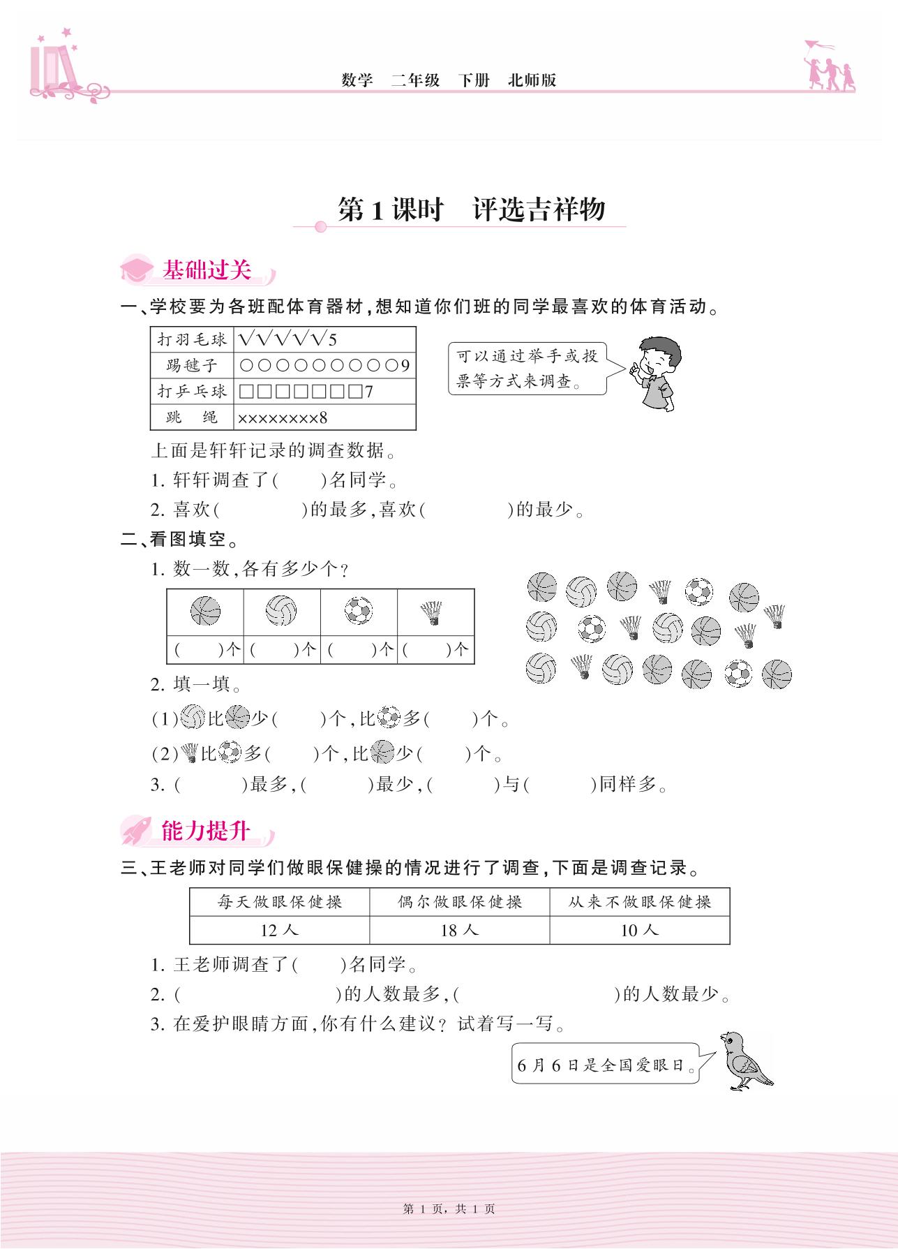 2021下册二年级数学北师版 八 调查与记录——第1课时 评选吉祥物
