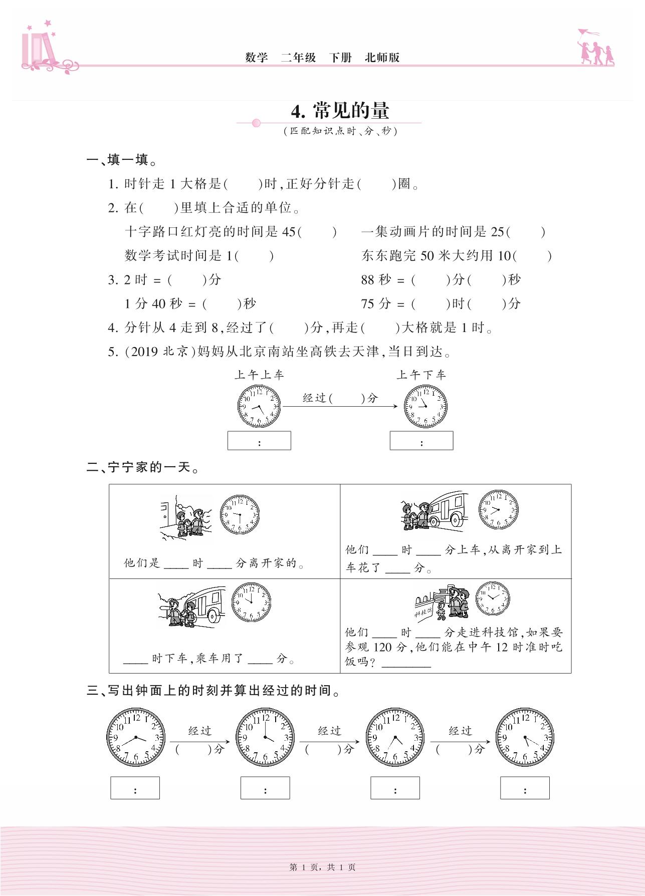 2021下册二年级数学北师版 总复习——4. 常见的量