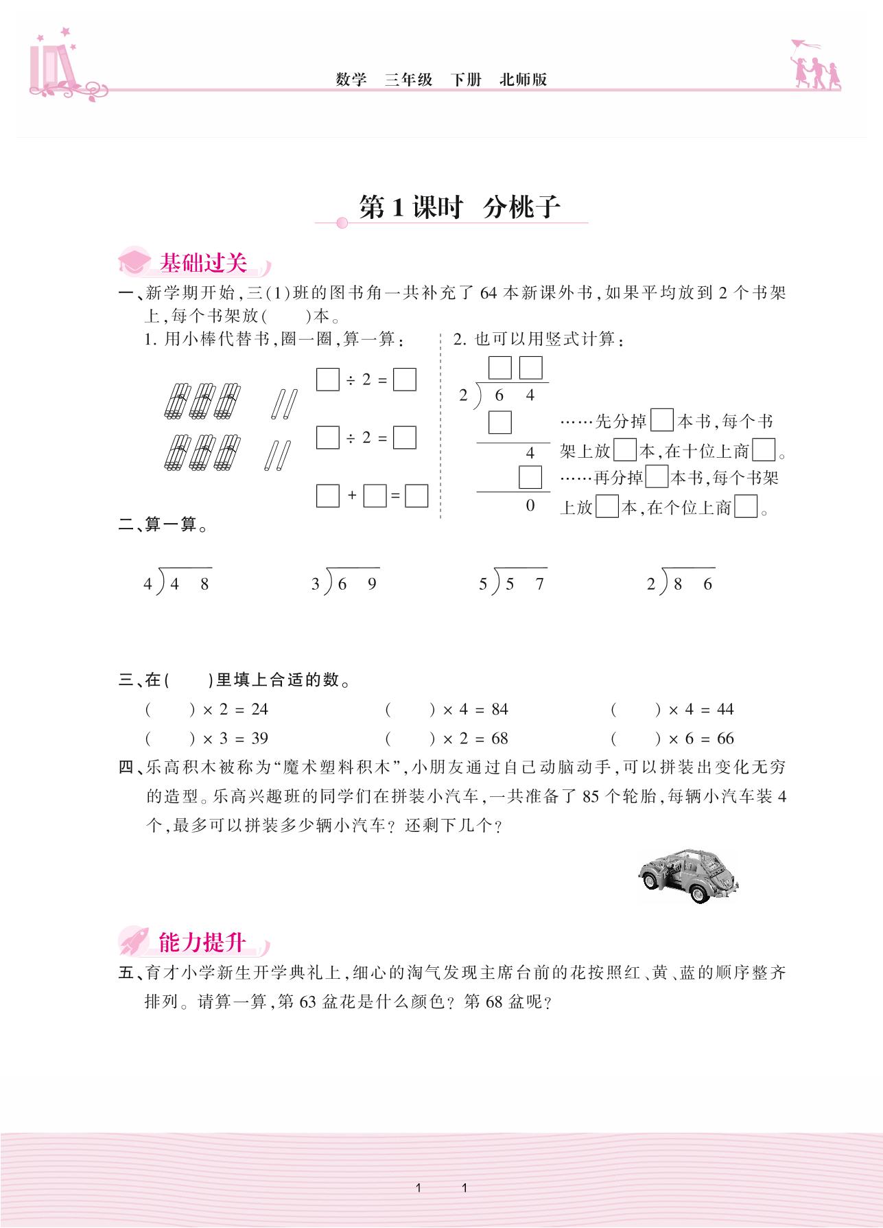 2021下册三年级数学北师版 一 除法——第1课时 分桃子
