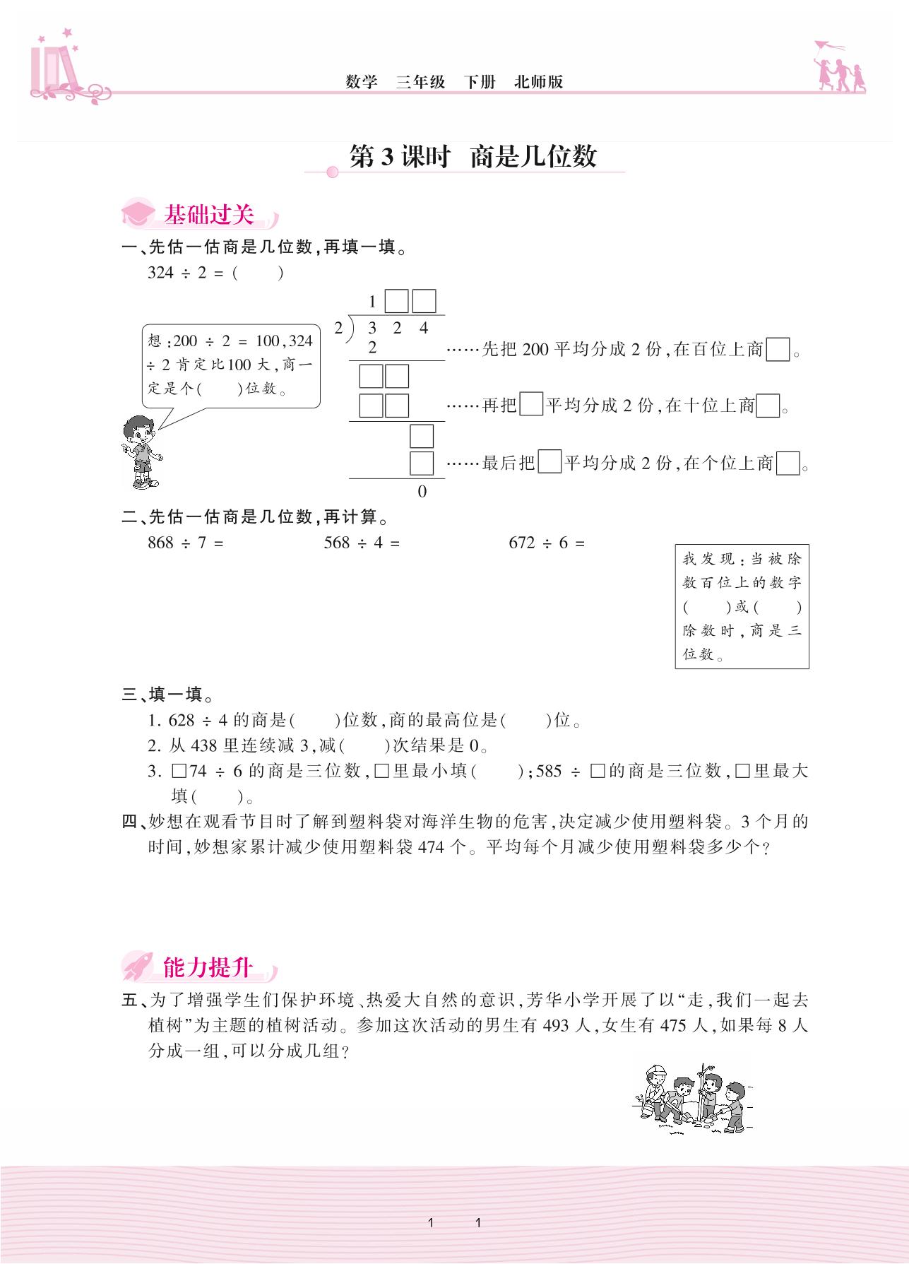 2021下册三年级数学北师版 一 除法——第3课时 商是几位数