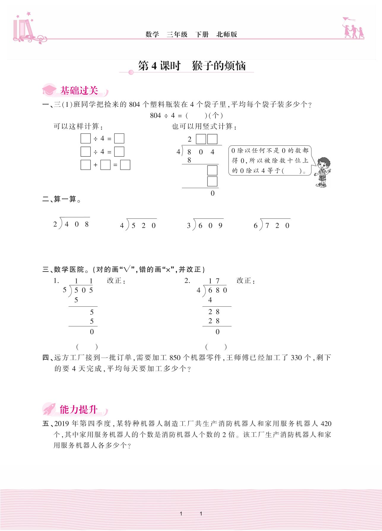 2021下册三年级数学北师版 一 除法——第4课时 猴子的烦恼