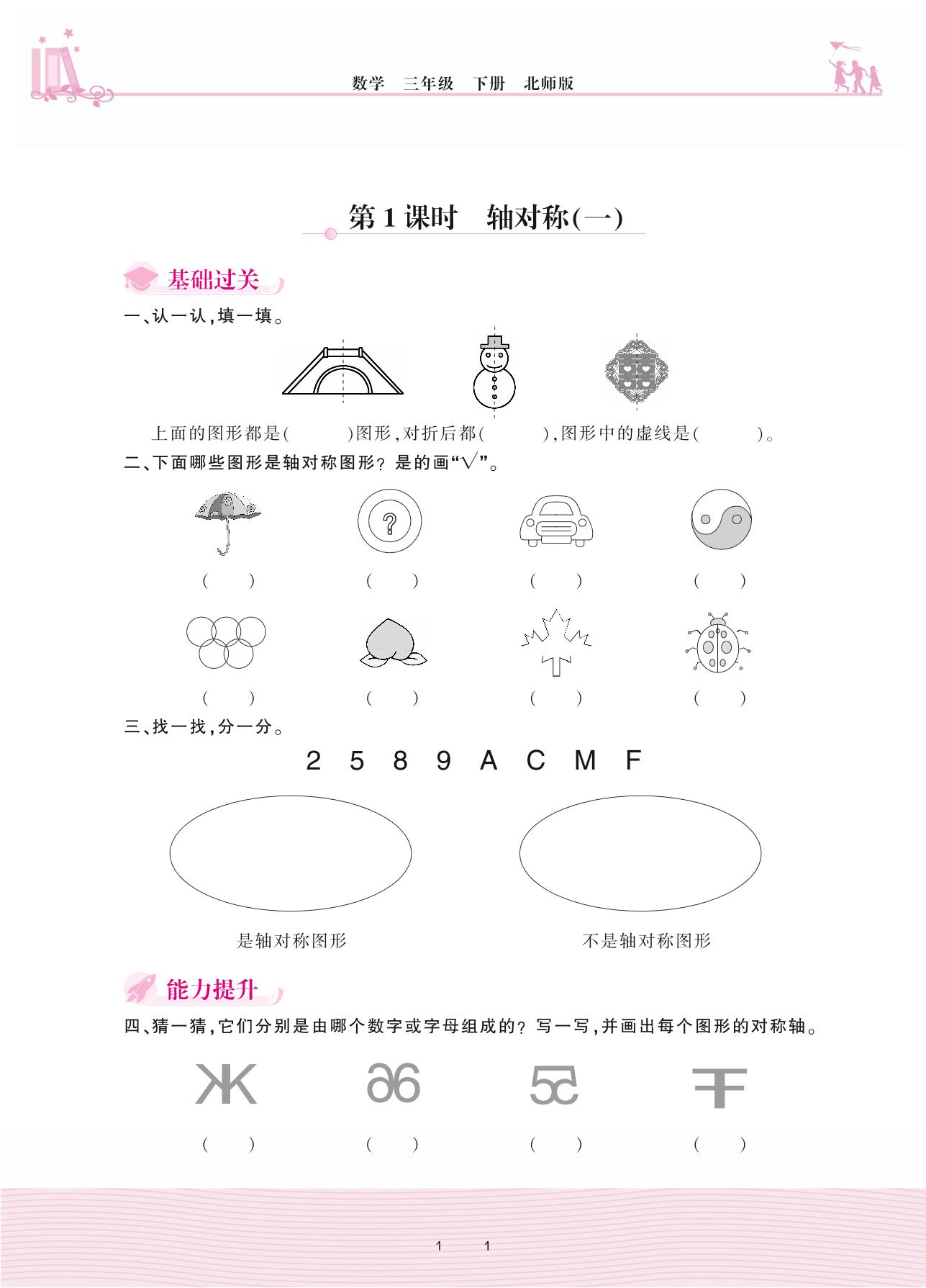 2021下册三年级数学北师版 二 图形的运动——第1课时 轴对称(一)