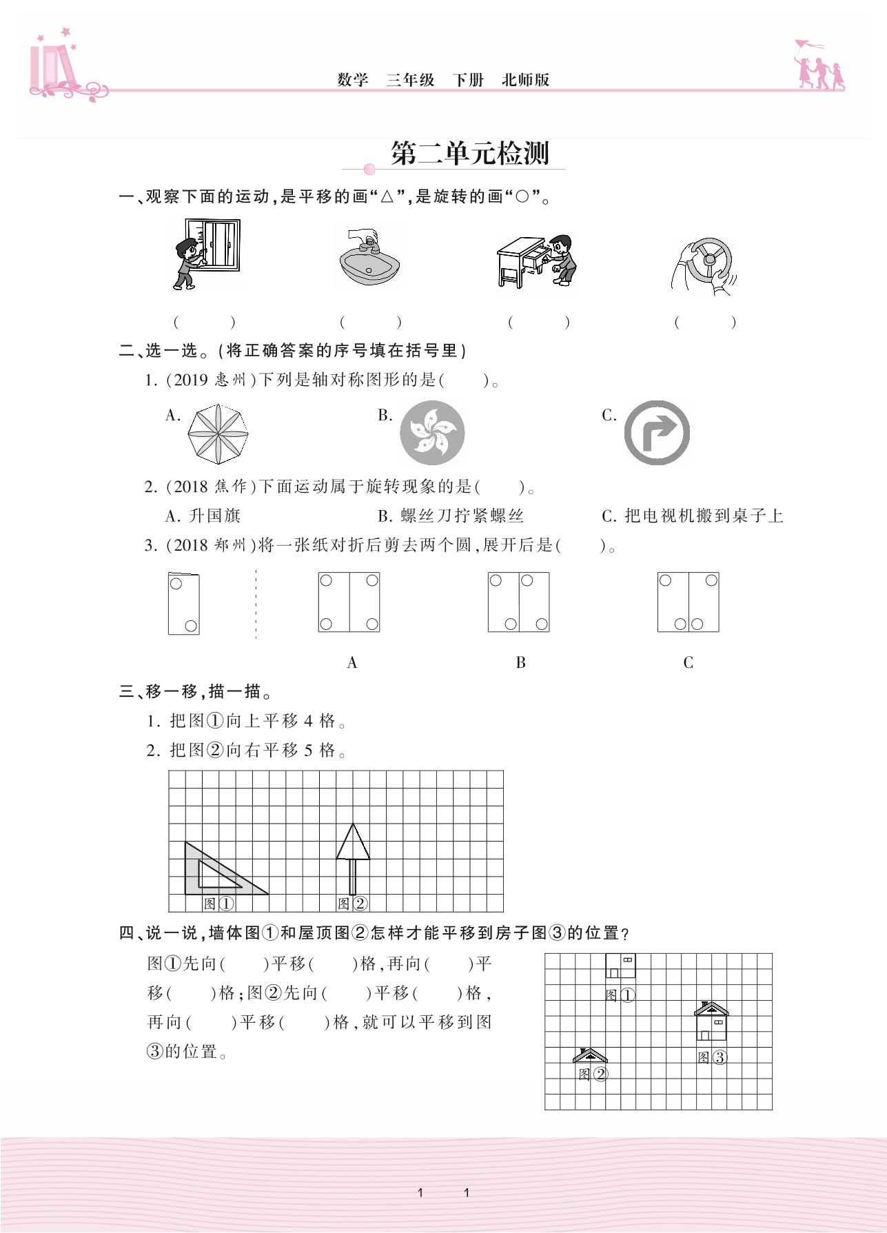 2021下册三年级数学北师版 二 图形的运动——第二单元检测