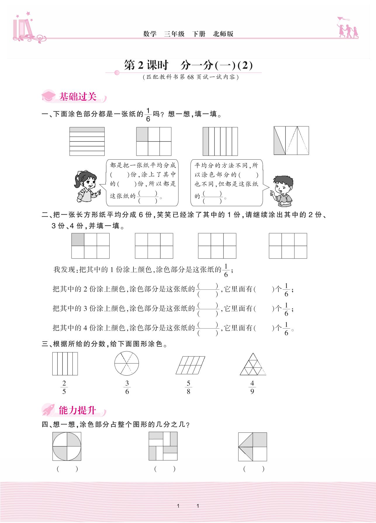 2021下册三年级数学北师版 六 认识分数——第2课时 分一分(一)(2)