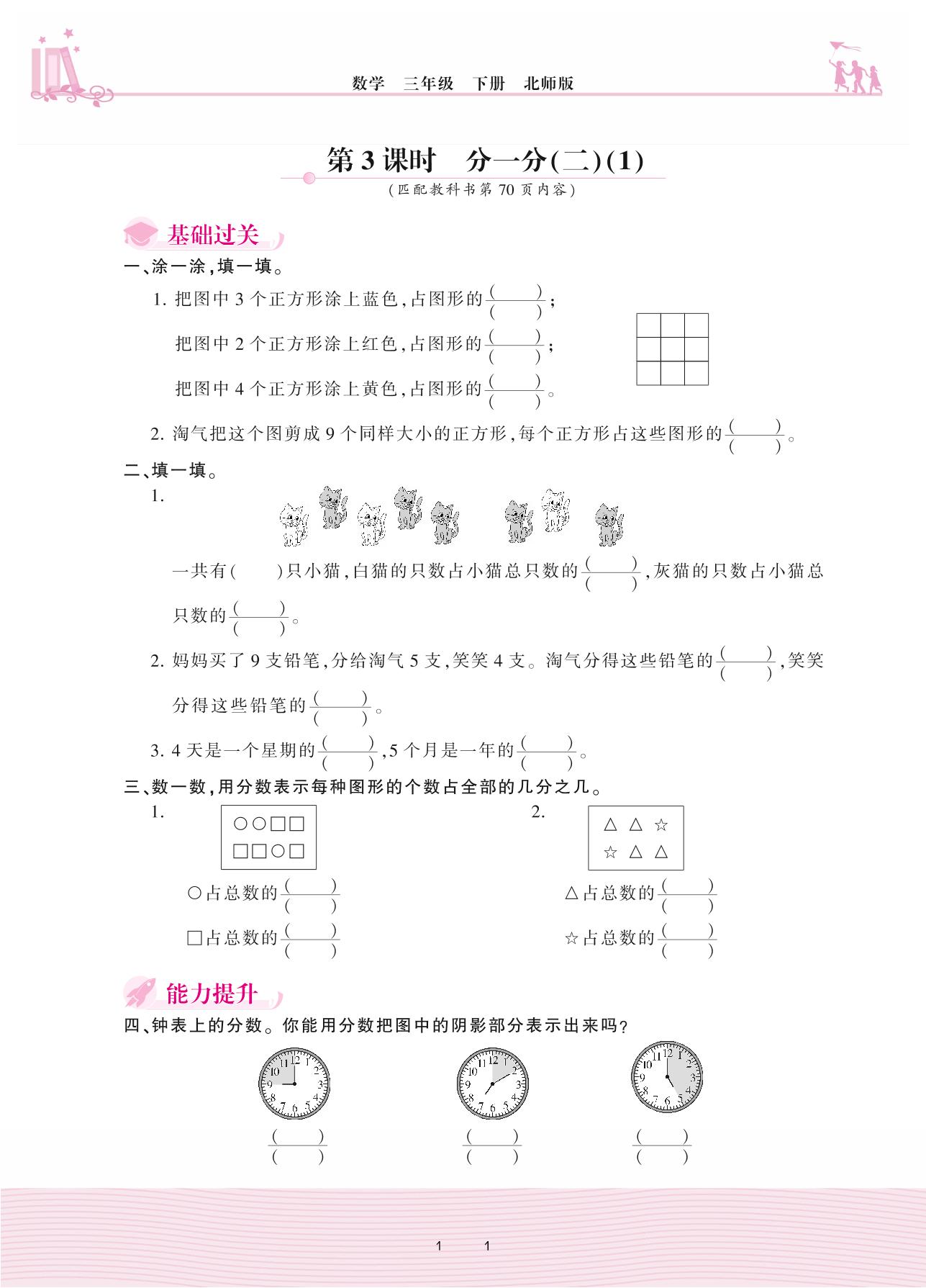 2021下册三年级数学北师版 六 认识分数——第3课时 分一分(二)(1)