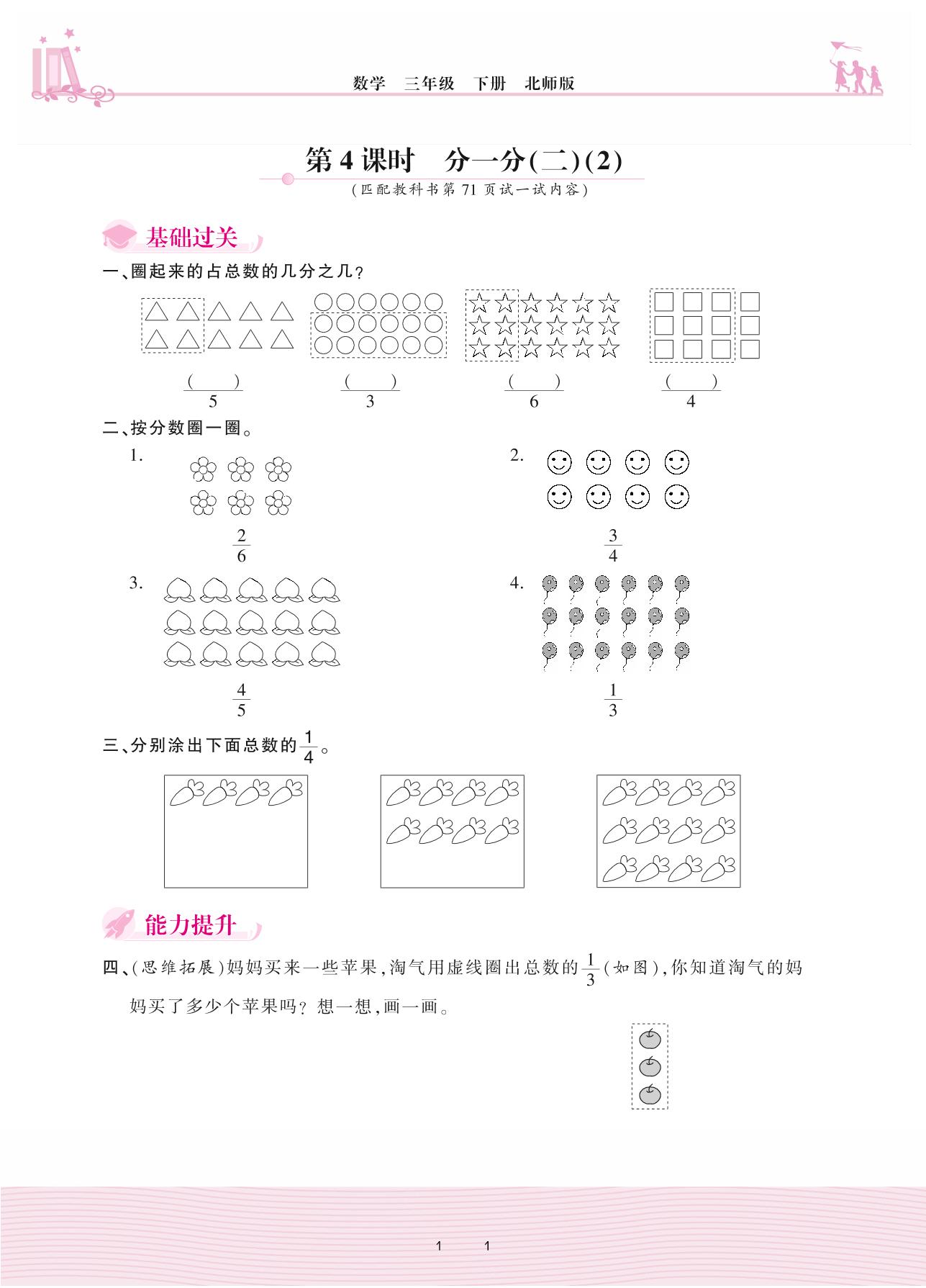 2021下册三年级数学北师版 六 认识分数——第4课时 分一分(二)(2)