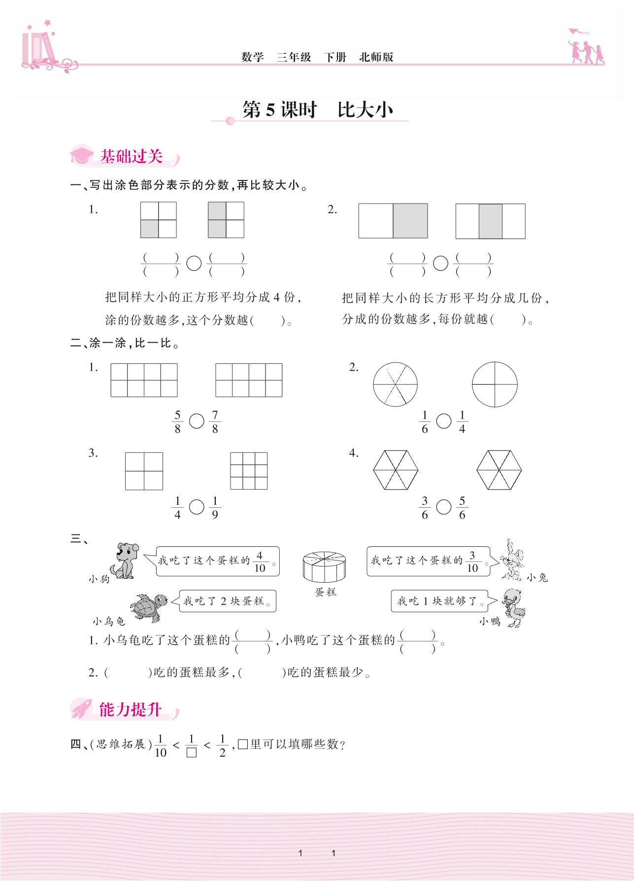 2021下册三年级数学北师版 六 认识分数——第5课时 比大小