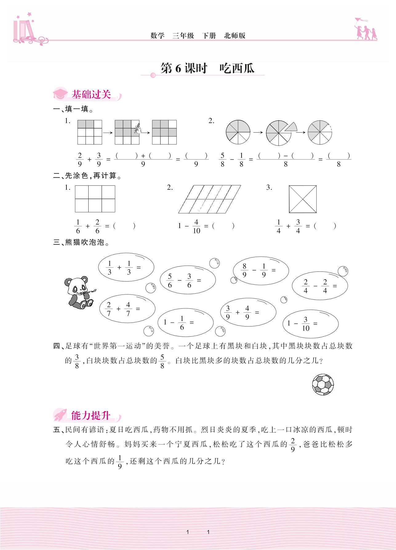 2021下册三年级数学北师版 六 认识分数——第6课时 吃西瓜
