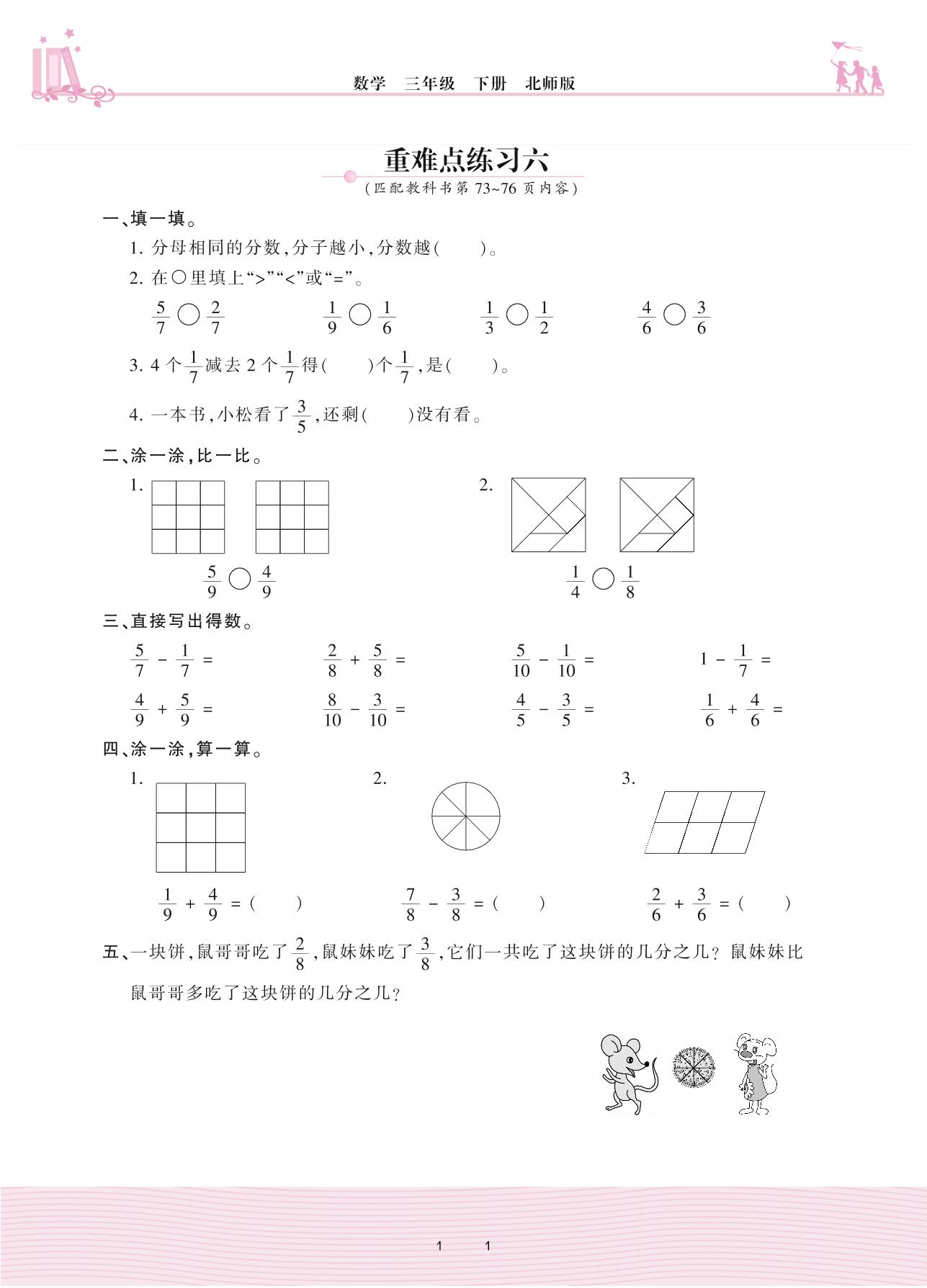 2021下册三年级数学北师版 六 认识分数——重难点练习六