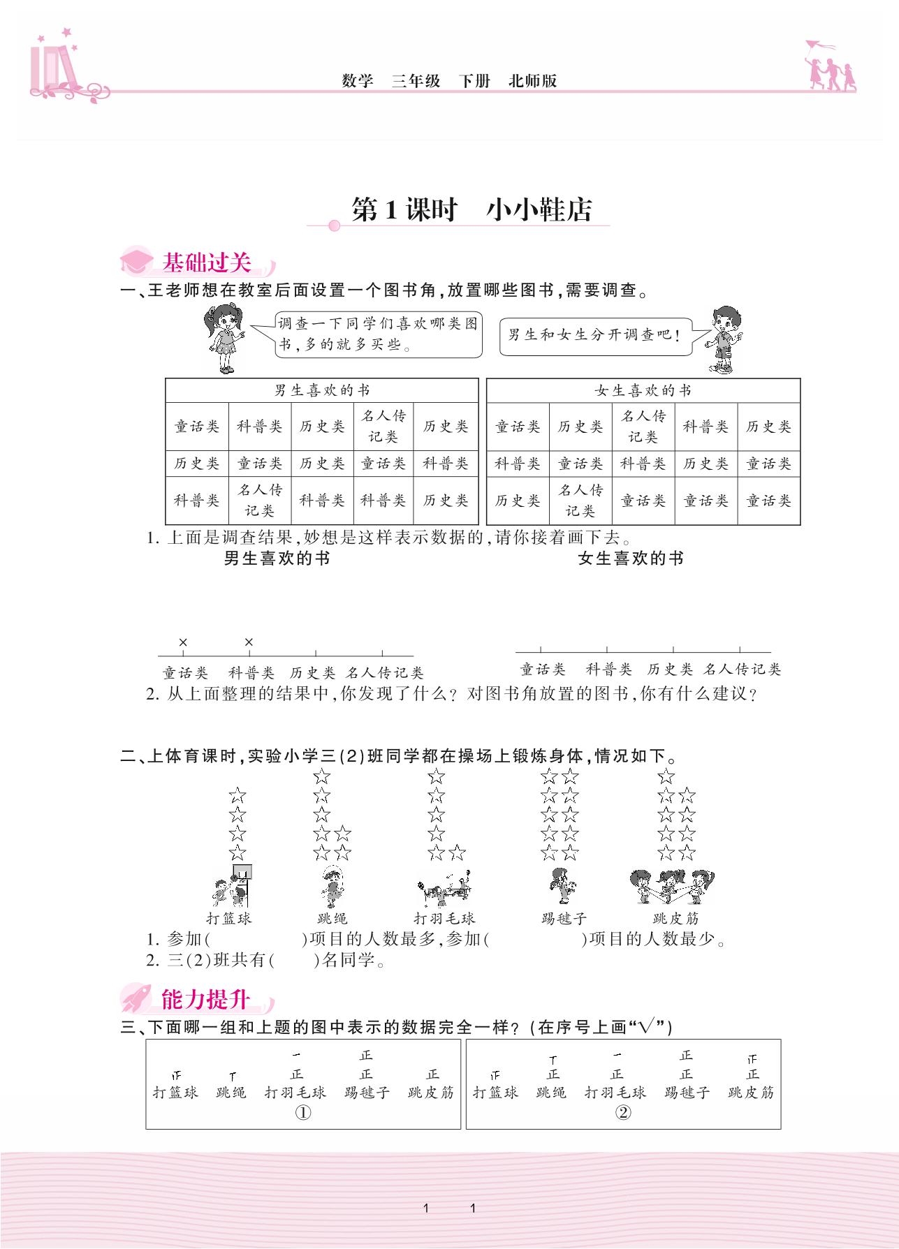 2021下册三年级数学北师版 七 数据的整理和表示——第1课时 小小鞋店