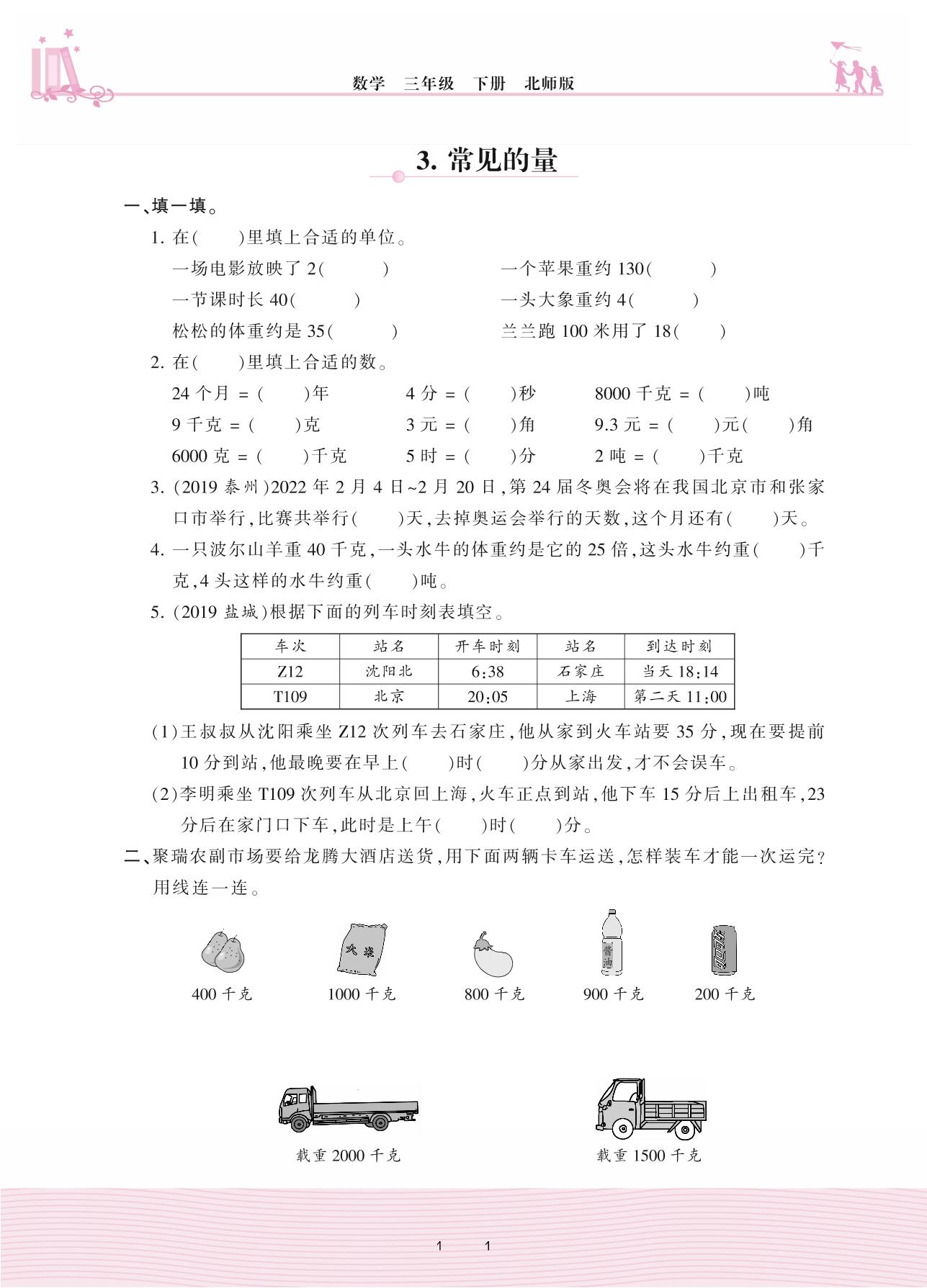 2021下册三年级数学北师版 总复习——3. 常见的量