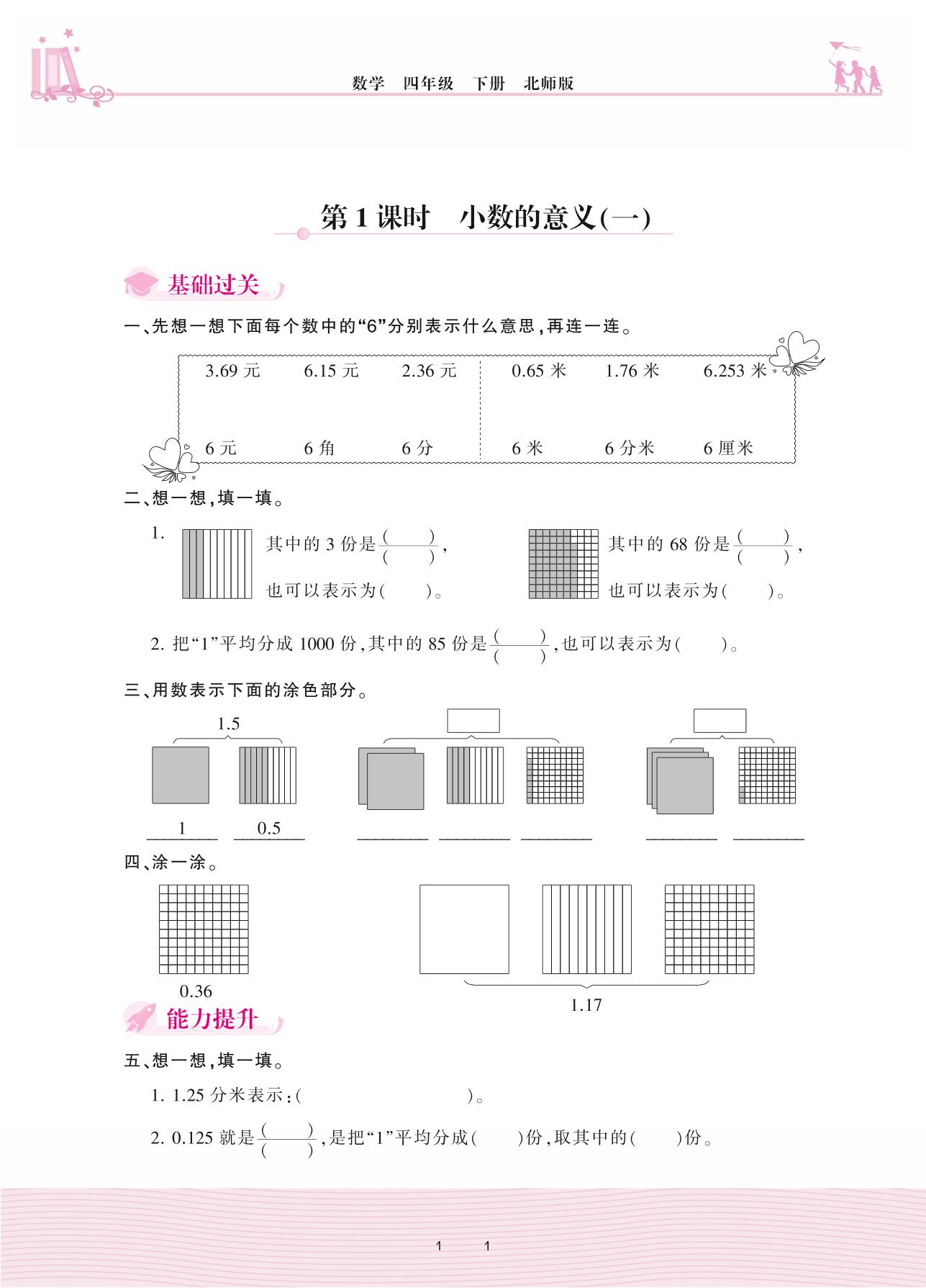 2021下册四年级数学北师版 一 小数的意义和加减法——第1课时 小数的意义(一)