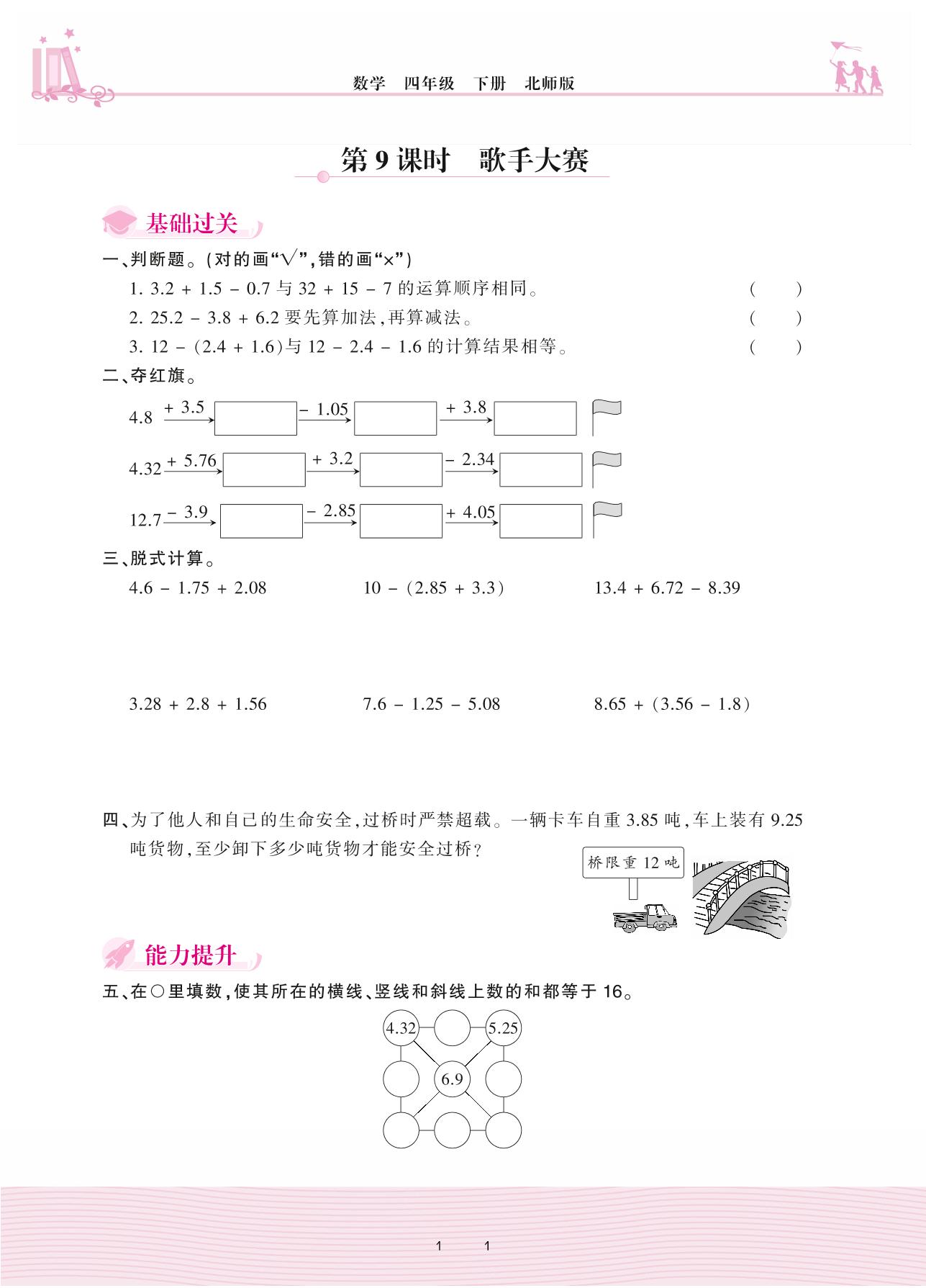 2021下册四年级数学北师版 一 小数的意义和加减法——第9课时 歌手大赛