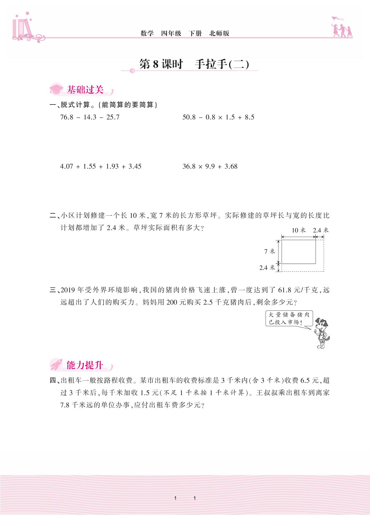 2021下册四年级数学北师版 三 小数乘法——第8课时 手拉手(二)