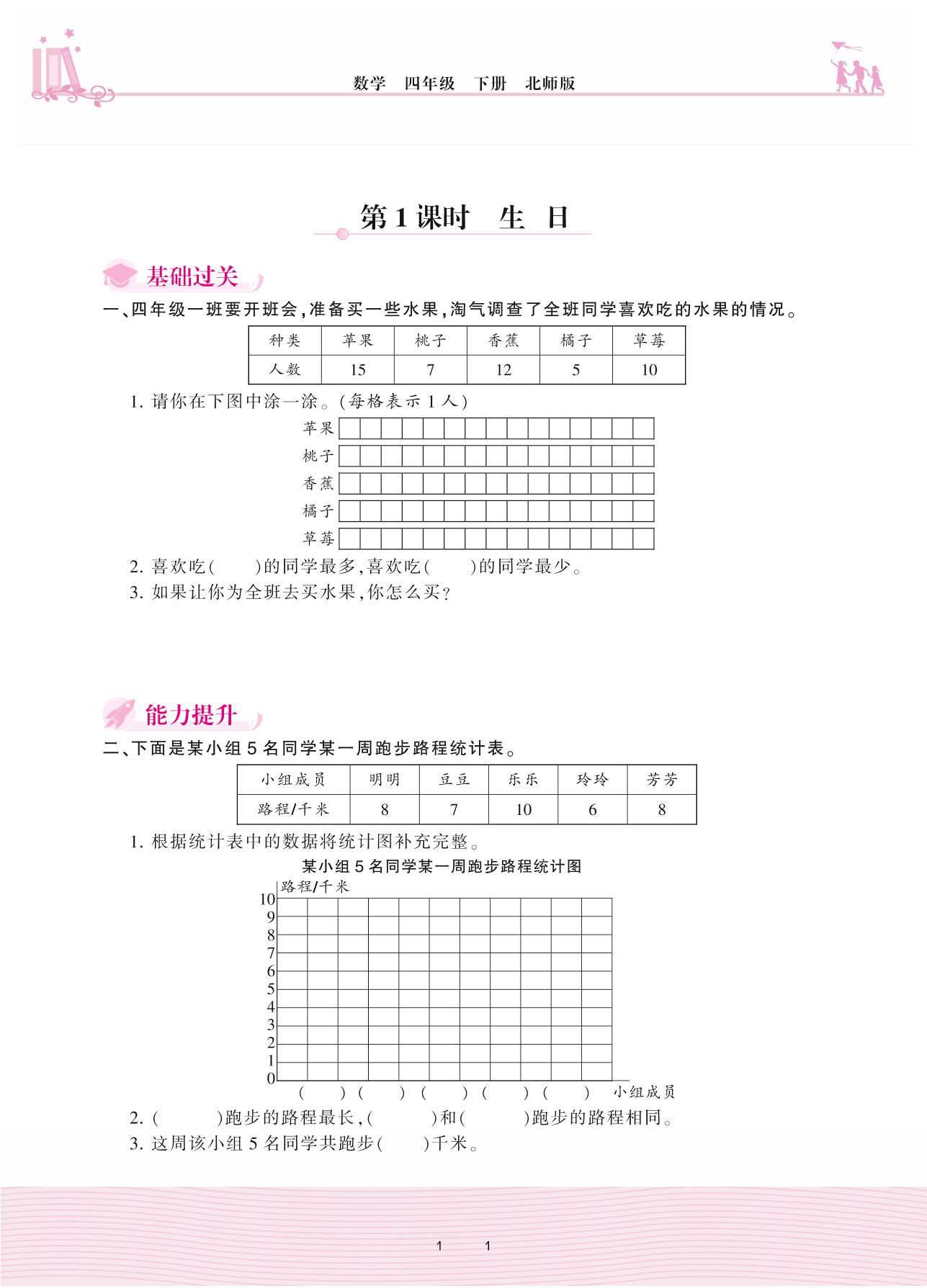 2021下册四年级数学北师版 六 数据的表示和分析——第1课时 生日