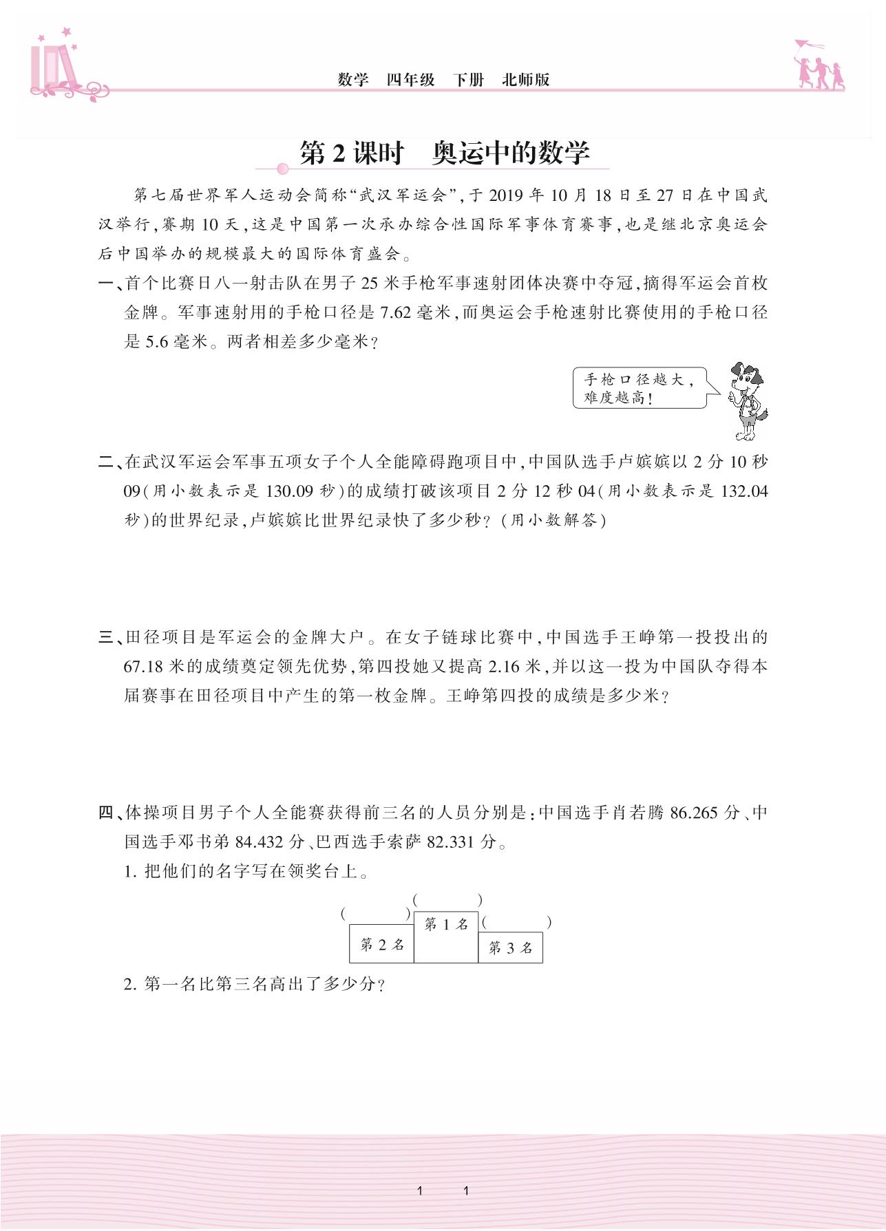 2021下册四年级数学北师版 数学好玩——第2课时 奥运中的数学