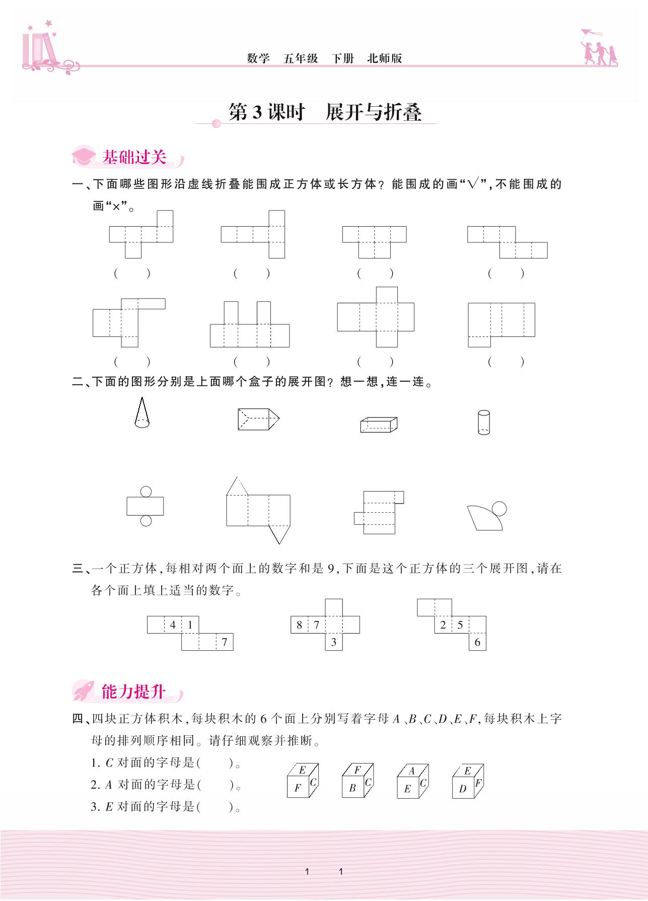 2021下册五年级数学北师版 二 长方体(一)——第3课时 展开与折叠